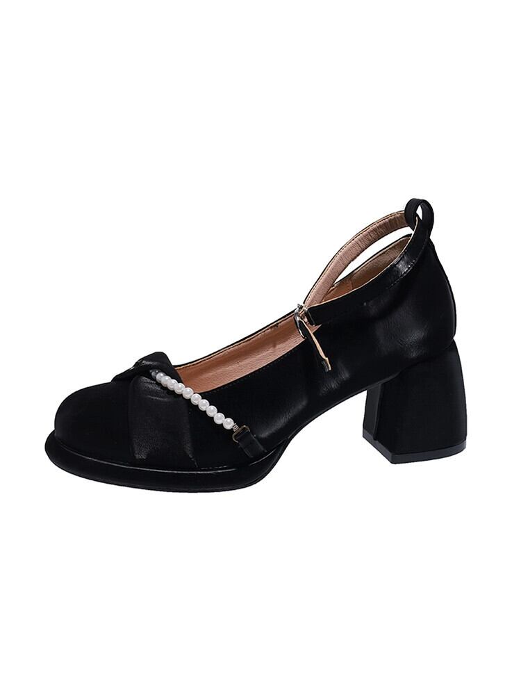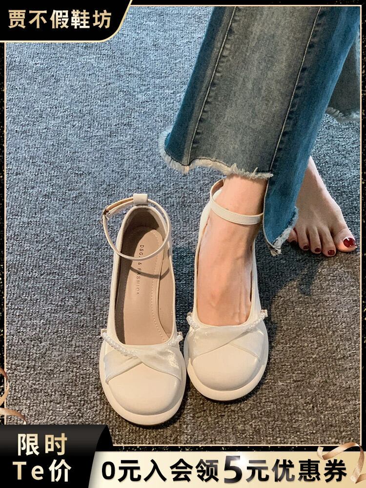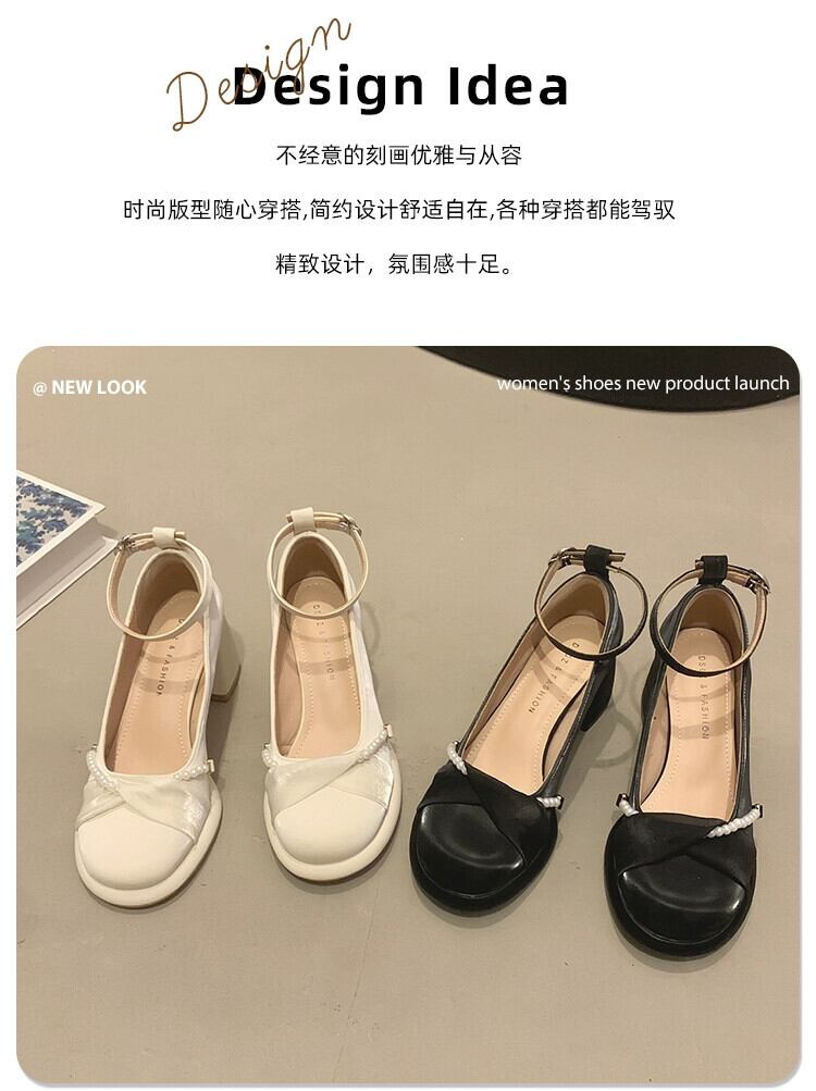 Jia Bujia スタイルの女性の 2023 秋の新フレンチレトロパール気質厚いヒールメリージェーンシューズ 靴 オータム 秋物 真珠 jxjxf41351066598