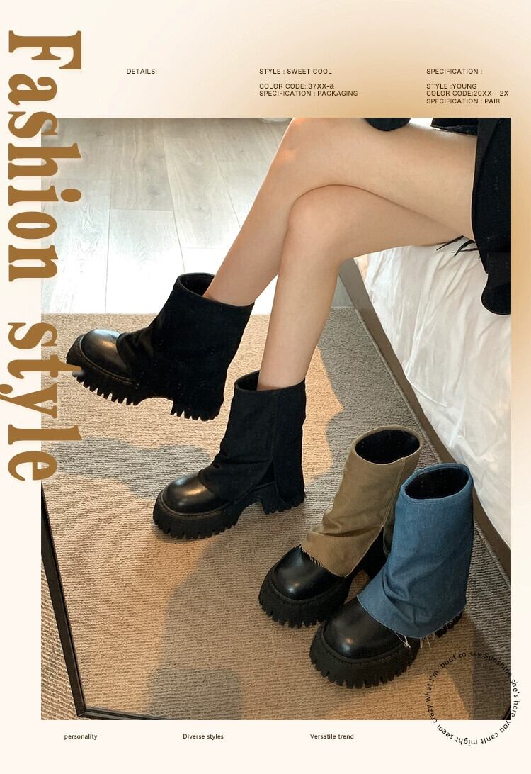 Jia Bujia ショートブーツの女性 2023 夏の新ファッション多用途レトロハンサムな厚底ストリートパンツブーツトレンド 靴 シューズ サマー 夏物 jxjxf8954976378