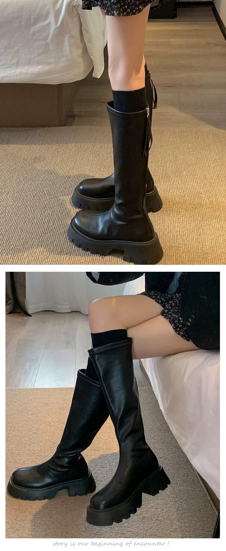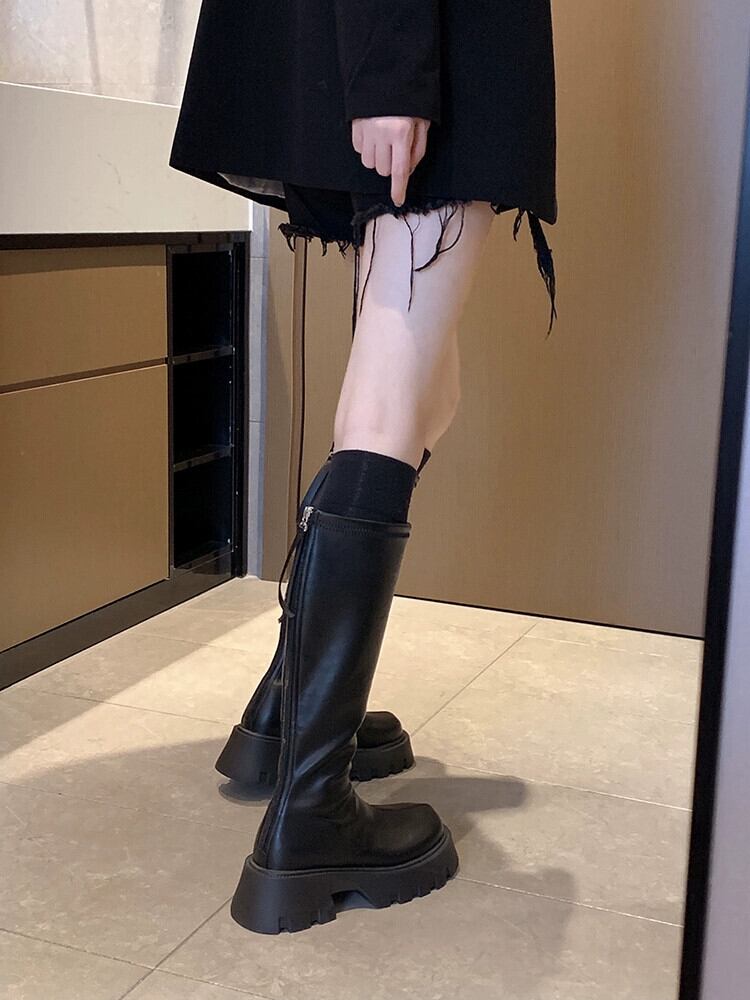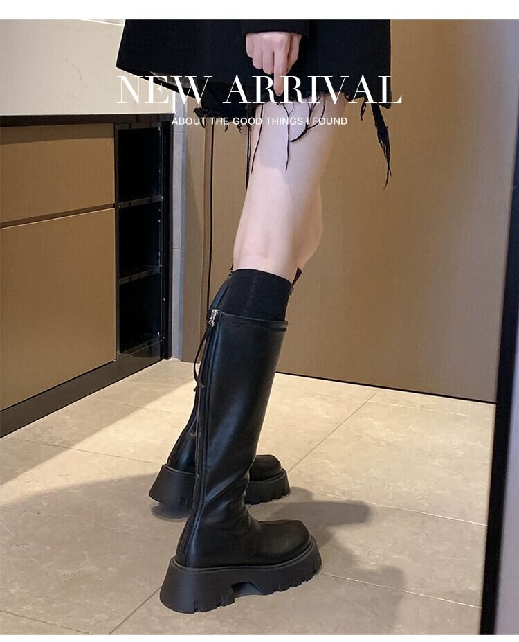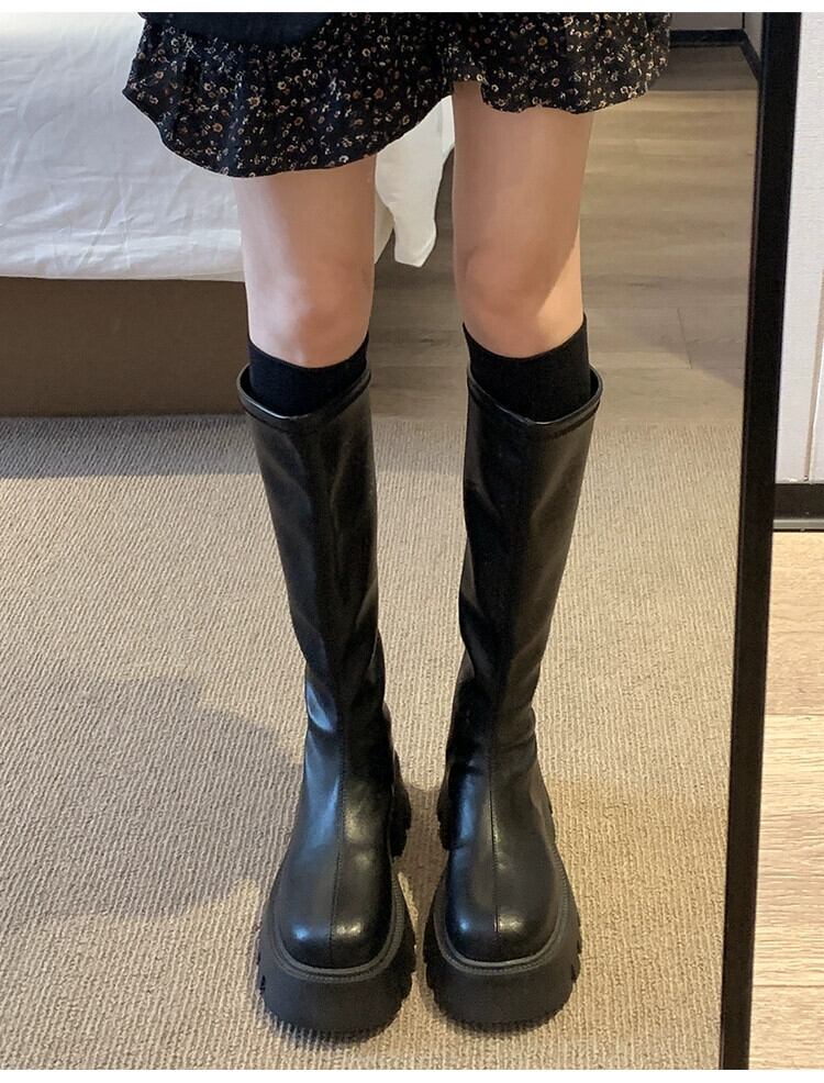 Jia Bujia ブーツの女性のブーツ 2023 夏の新ファッション多用途レトロ痩身厚底ハンサムスリムブーツ 靴 シューズ サマー 夏物 jxjxf29157184148