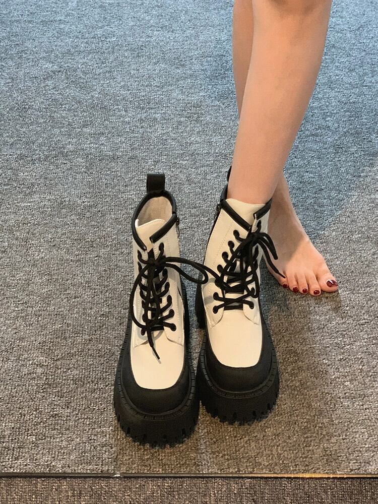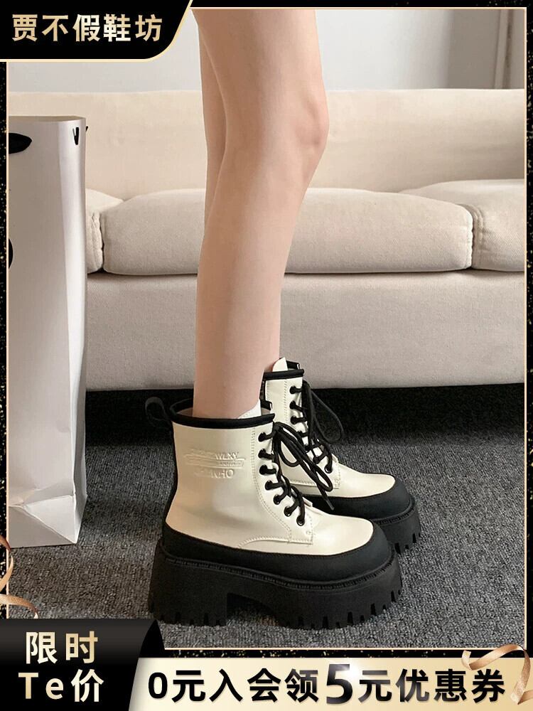 Jia Bujia インターネット有名人ショートブーツの女性 2023 夏の新スタイルレトロフレンチスタイル太いヒールカジュアルマーティンブーツ 靴 シューズ サマー 夏物 jxjxf72306857753