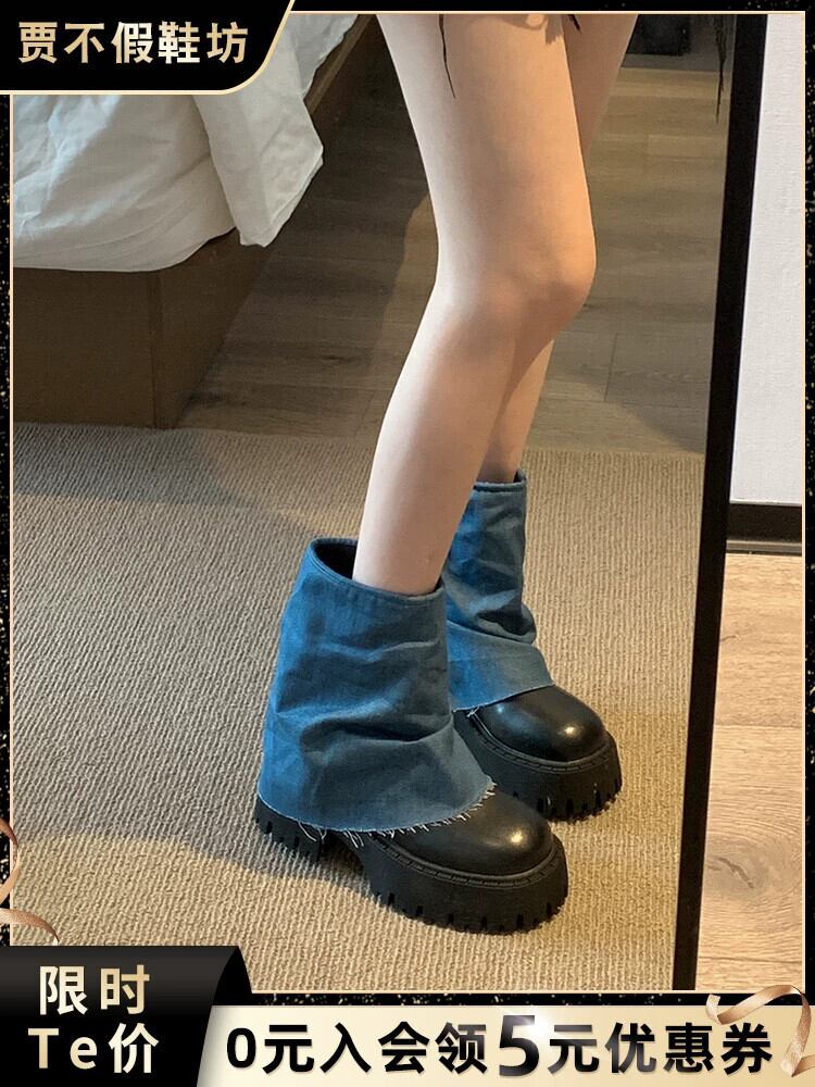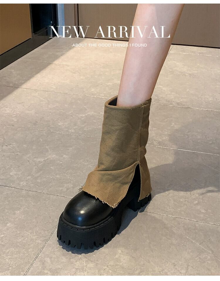 Jia Bufake ショートブーツ女性 2023 夏の新ファッション多用途レトロハンサム厚底オートバイズボンブーツトレンド 靴 シューズ サマー 夏物 jxjxf88130926414