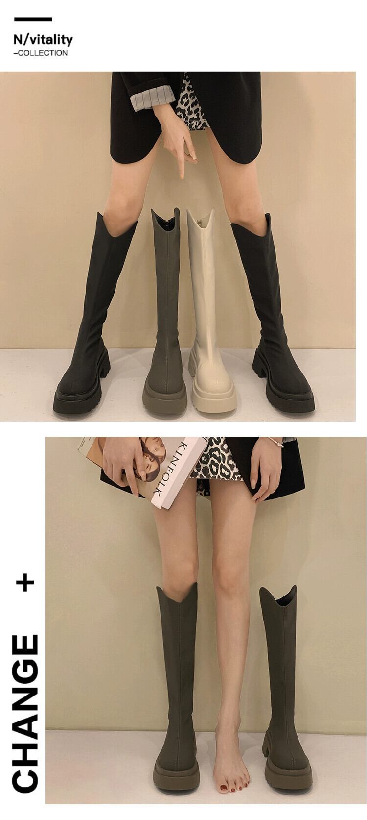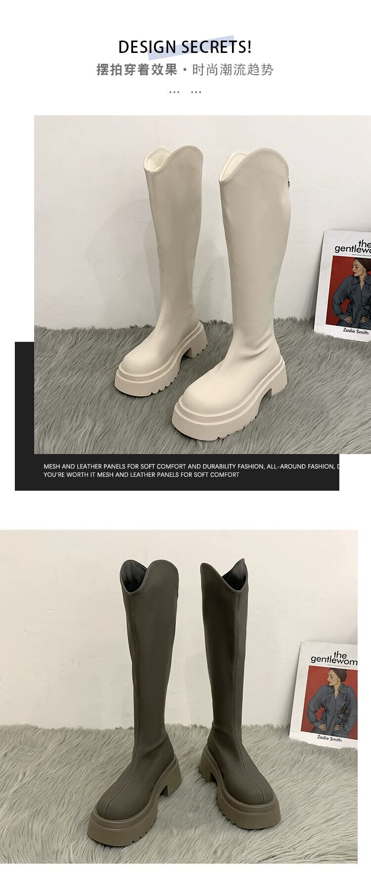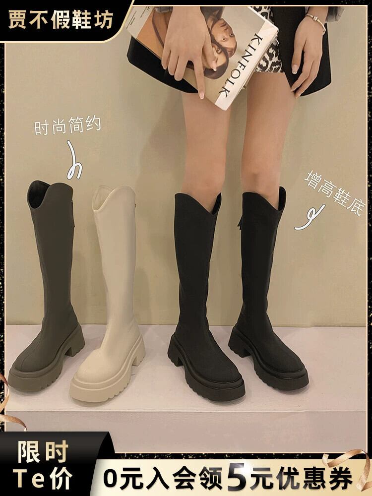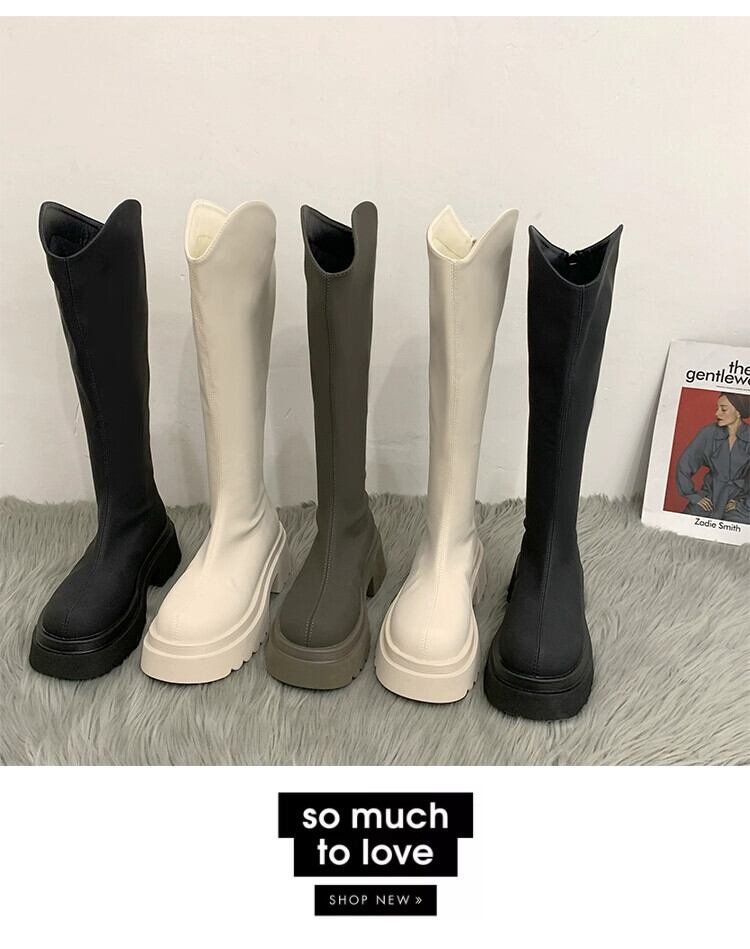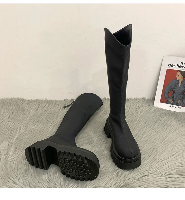 Jia Bujia ニーハイブーツの女性 2023 秋の新レトロ多用途シンプルな太いヒールの騎士ブーツトレンド 靴 シューズ オータム 秋物 jxjxf54337666616