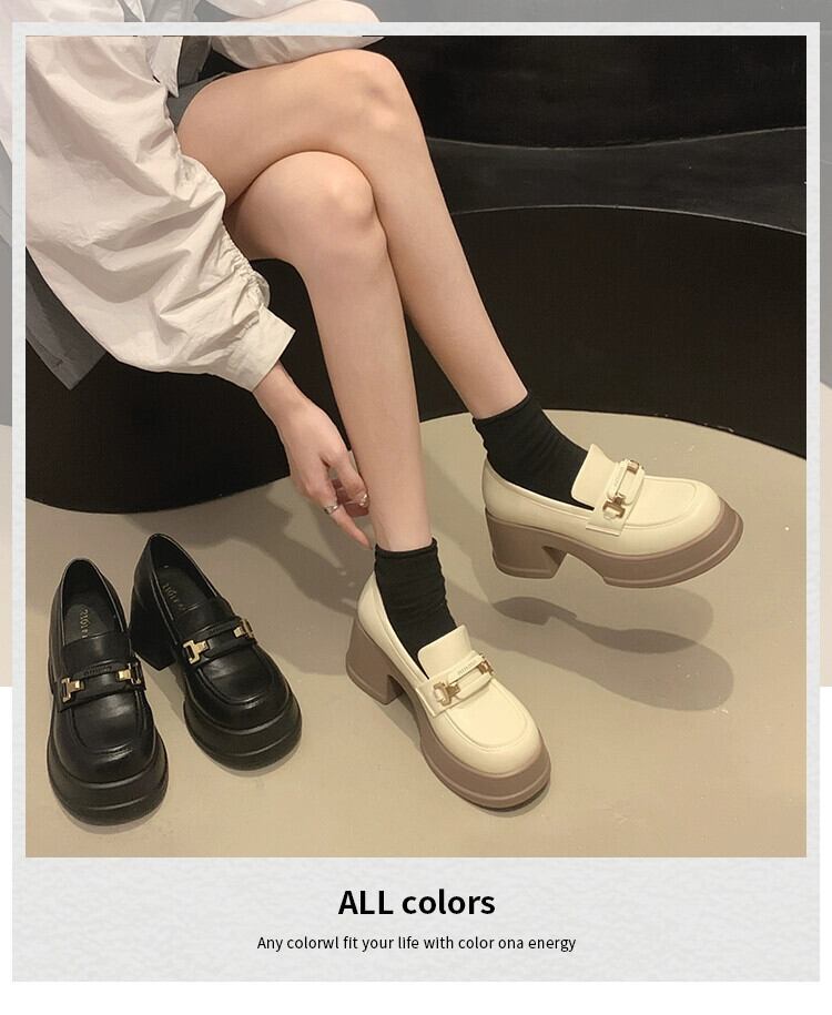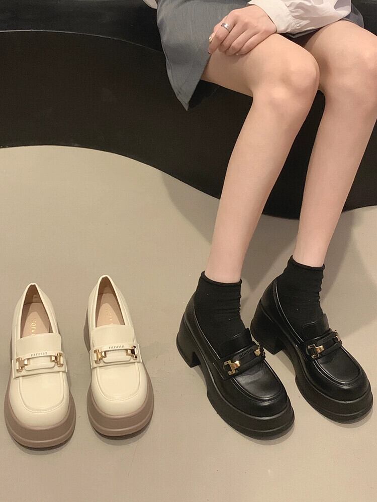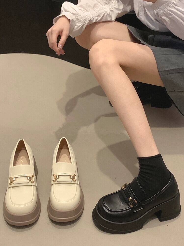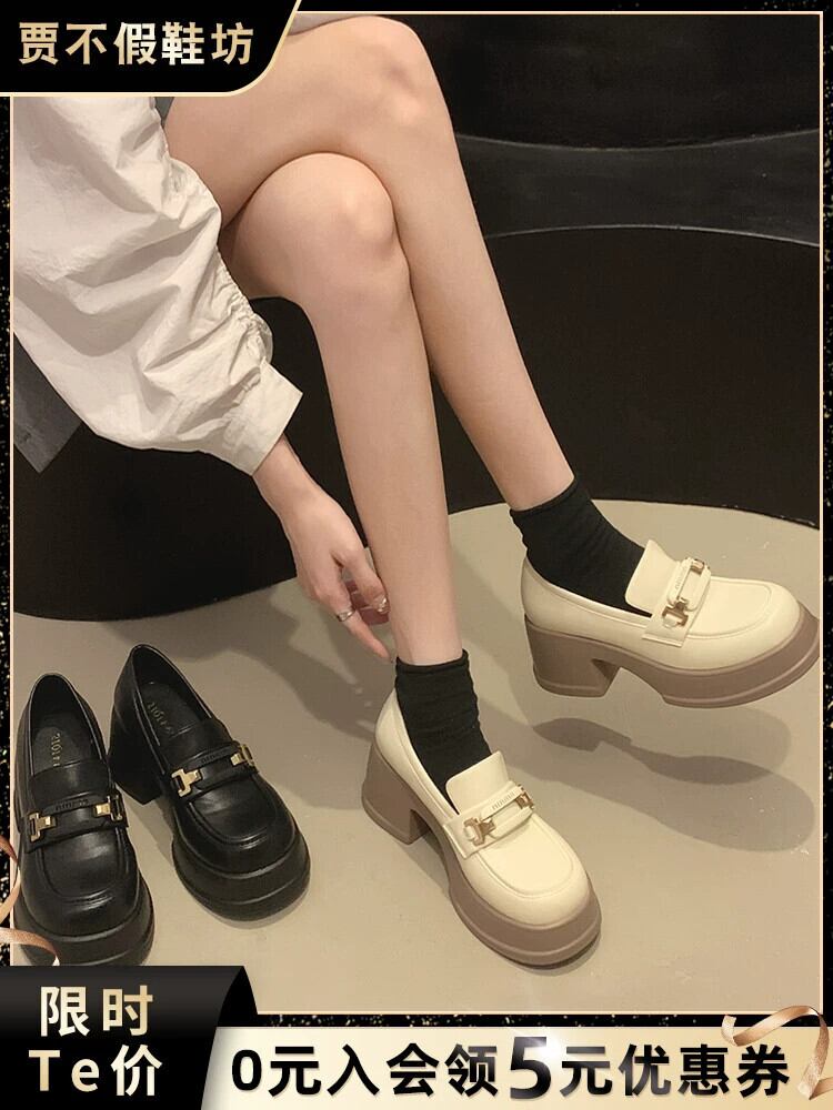 Jia Bujia 英国スタイルのシングルシューズの女性 2023 秋の新ファッション多用途小型太いヒール comtable ローファー 靴 オータム 秋物 jxjxf76087199007