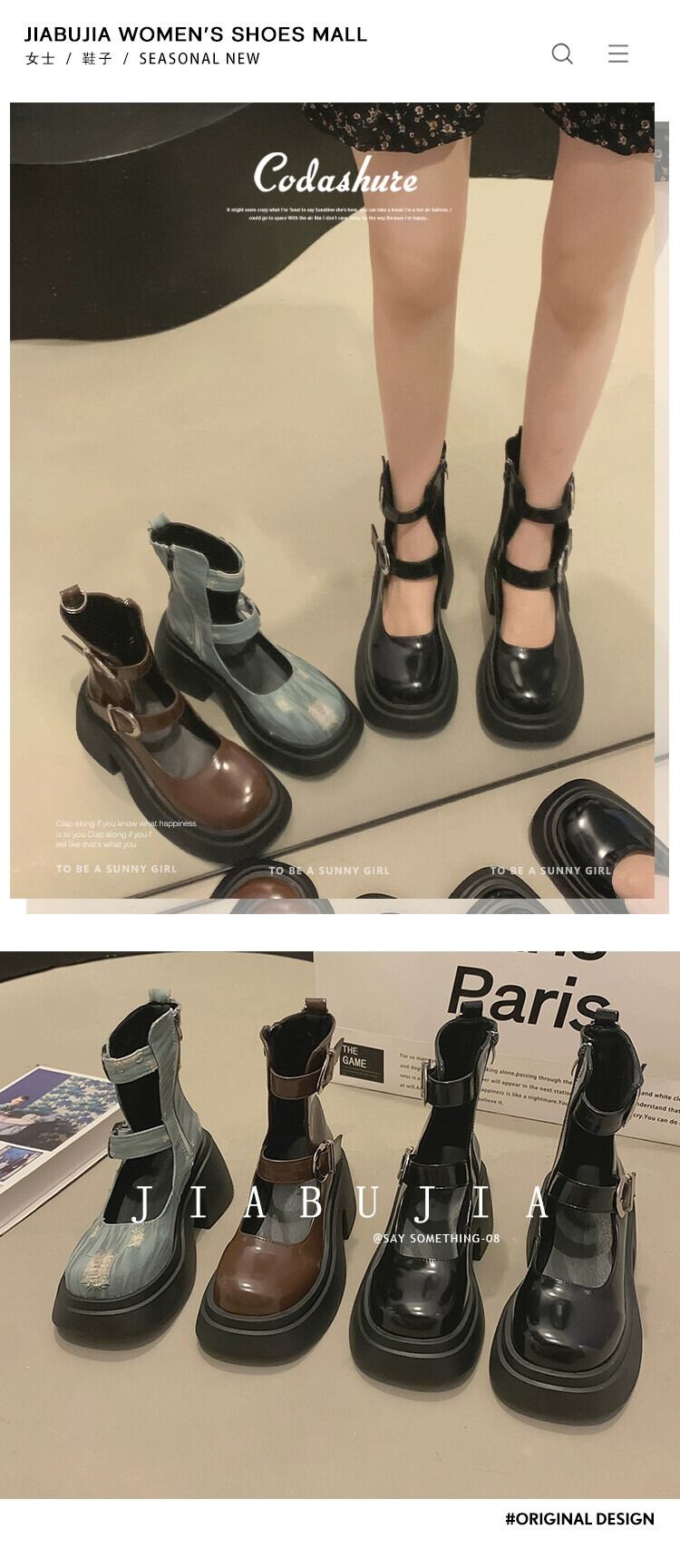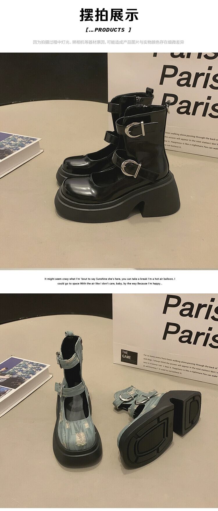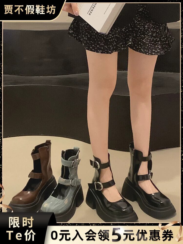 Jia Bujia アメリカンブーツ ショートブーツ レディース 2023 秋の新レトロベルトバックル太いヒール eign スタイル万能サンダル 靴 シューズ オータム 秋物 ハーネス jxjxf23967903050