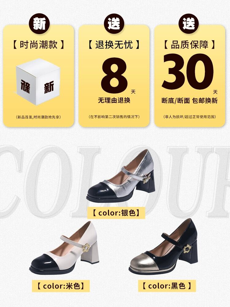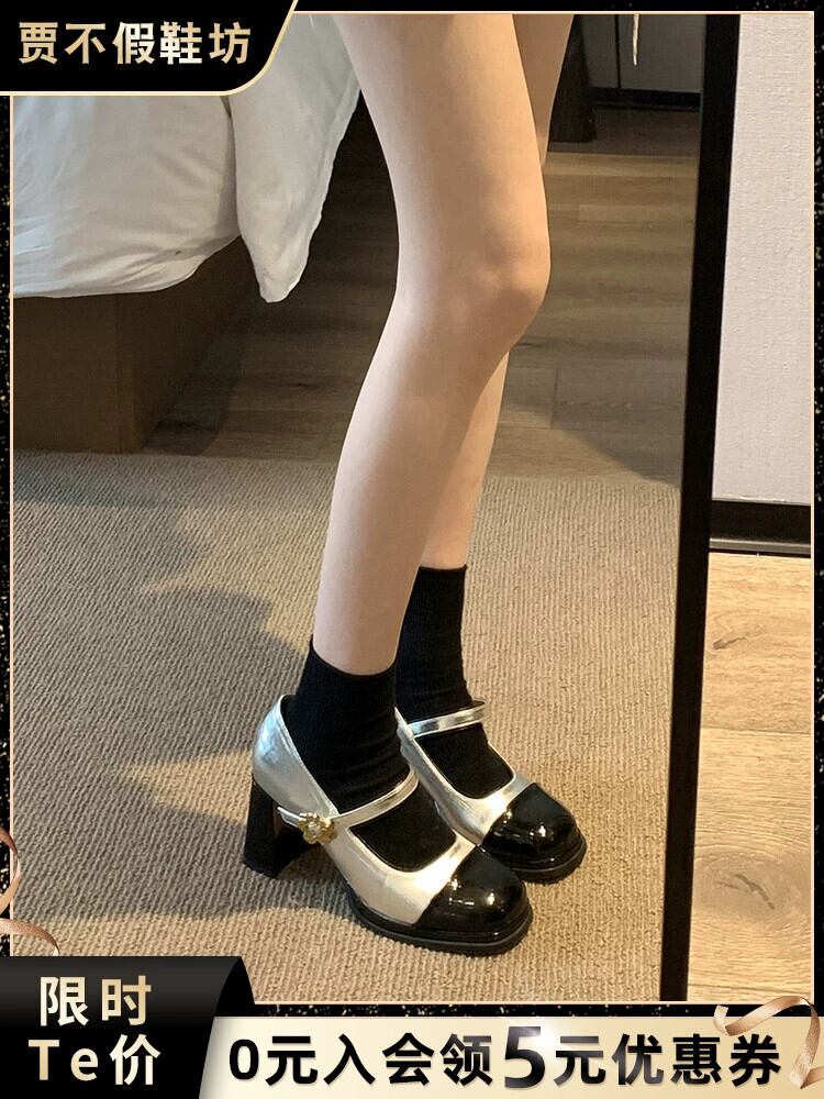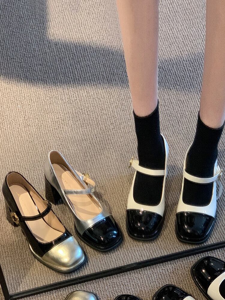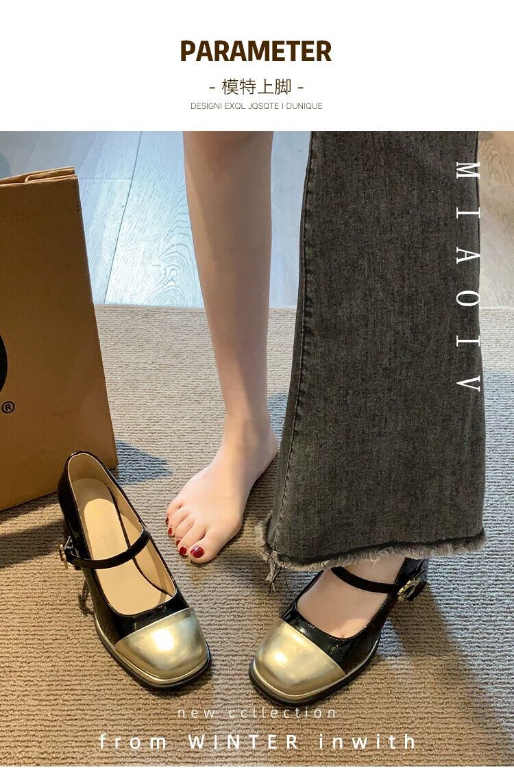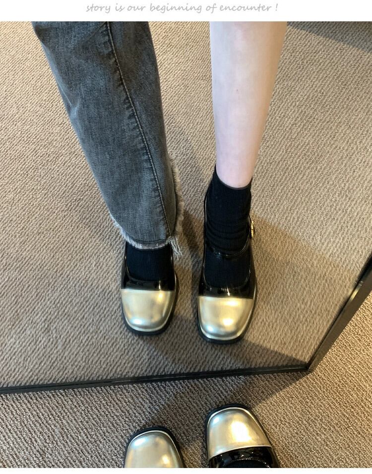 Jia Bujia スクエアトゥシューズ レディース 2023 秋 レトロスタイル スモールヒール メリージェーンシューズ 靴 オータム 秋物 スクウェア jxjxf91411267830