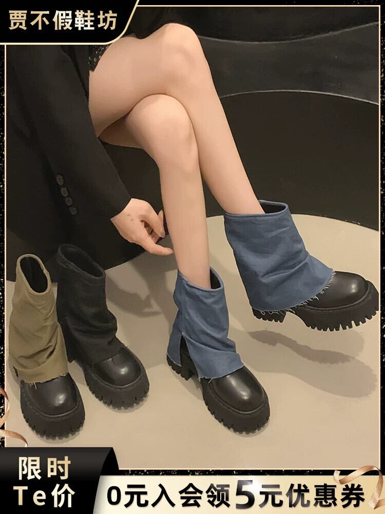 Jia Bujia ショートブーツ女性 2023 秋の新ファッション多用途レトロハンサム太いヒールストリートパンツブーツトレンド 靴 シューズ オータム 秋物 jxjxf36715399978