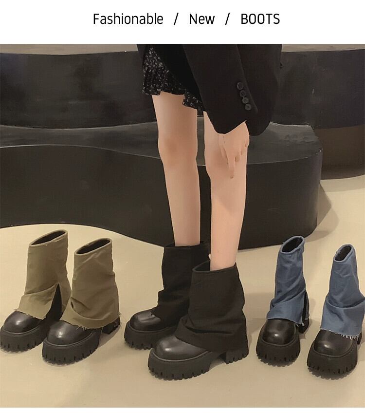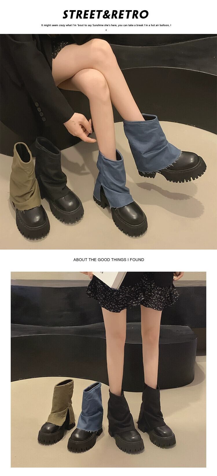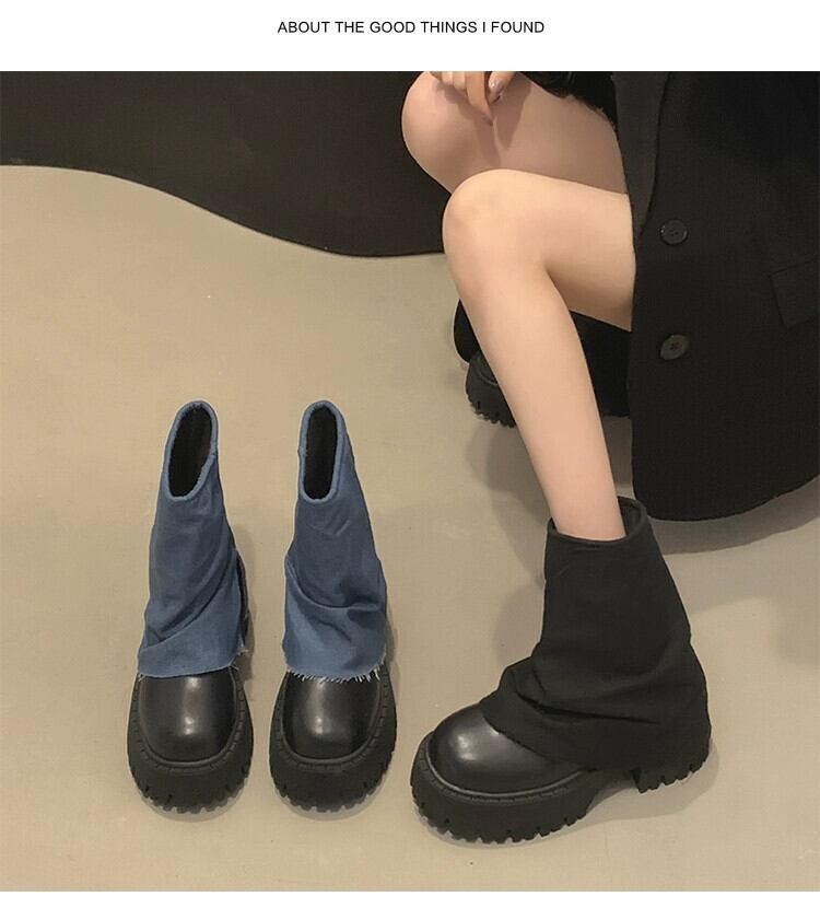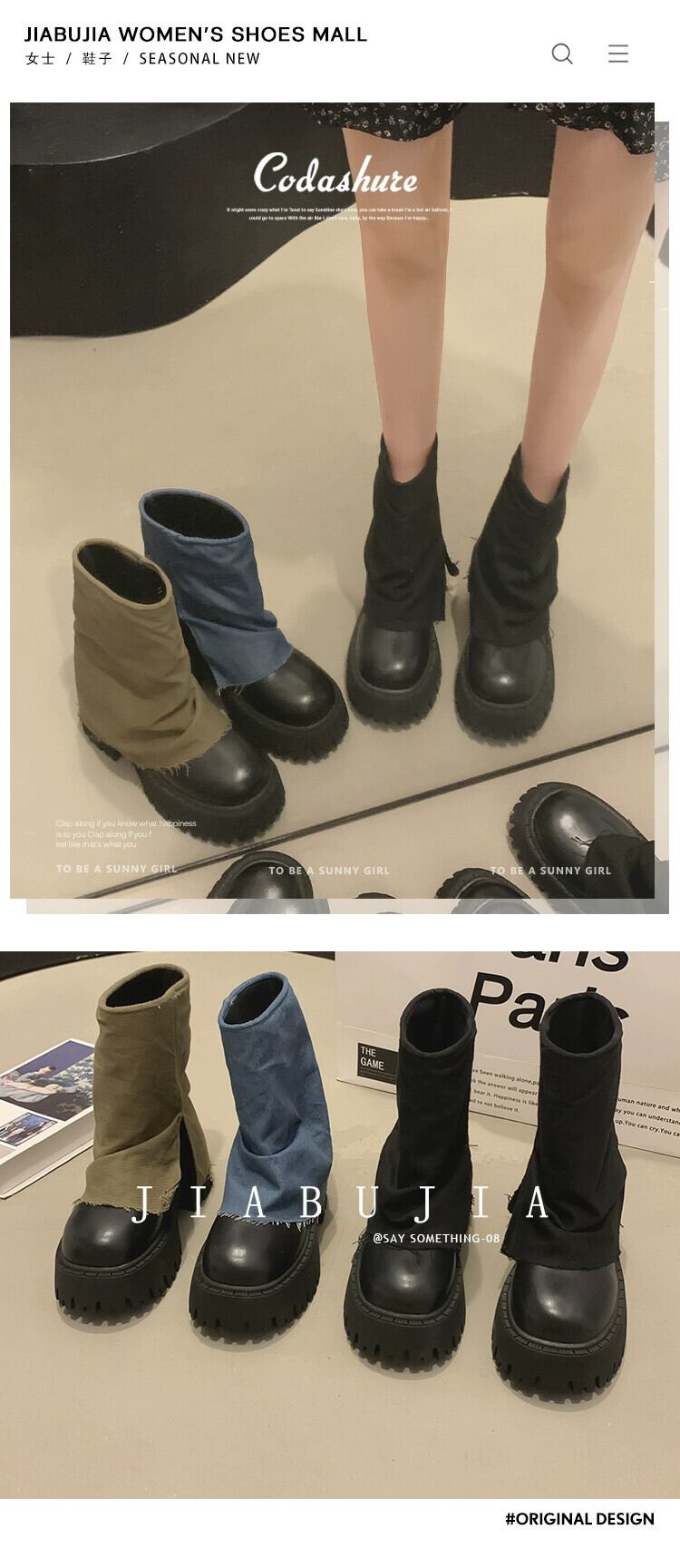 Jia Bujia ブーツショートブーツ女性 2023 秋の新ファッション多用途レトロハンサム厚底ストリートパンツブーツ 靴 シューズ オータム 秋物 jxjxf73764610946