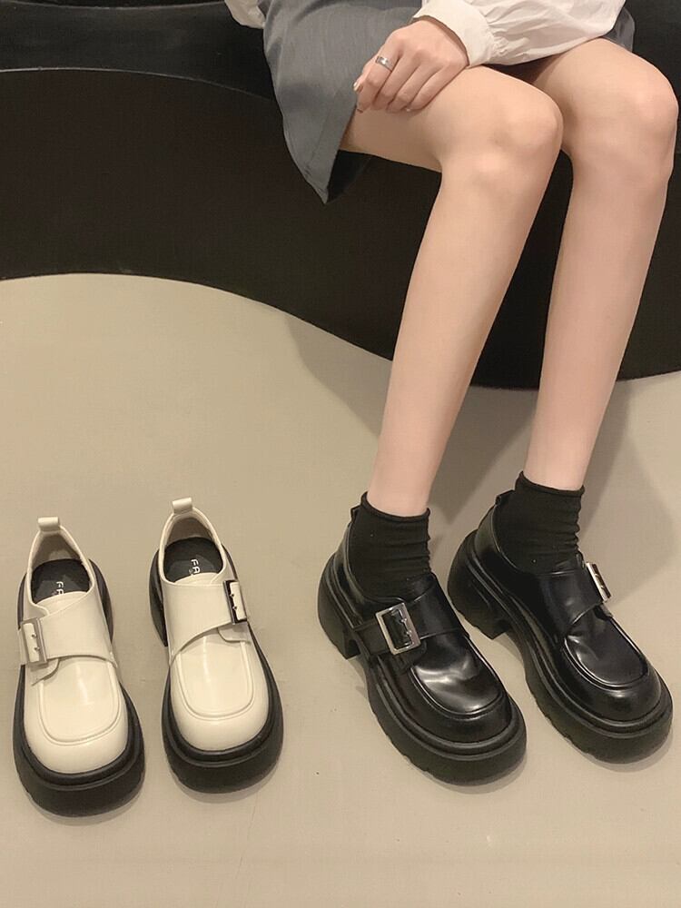Jia Bujia インターネット有名人のシングルシューズの女性 2023 秋の新ファッションレトロスタイルのベルトバックル太いヒールの小さな革の靴トレンディな オータム 秋物 レザー ハーネス jxjxf44194373680