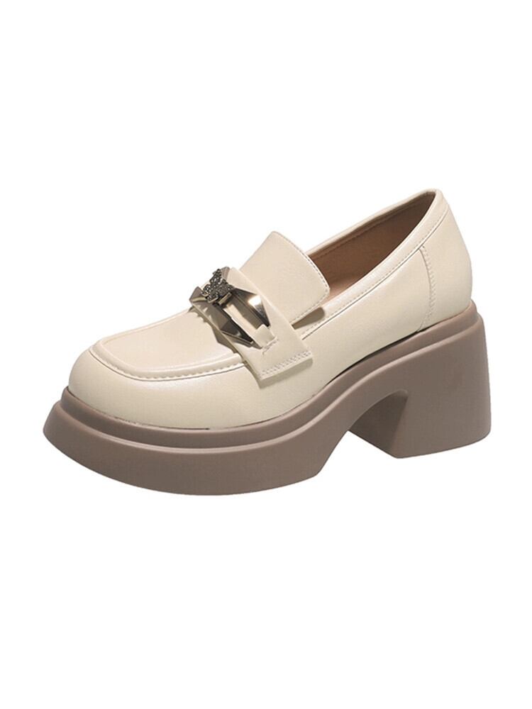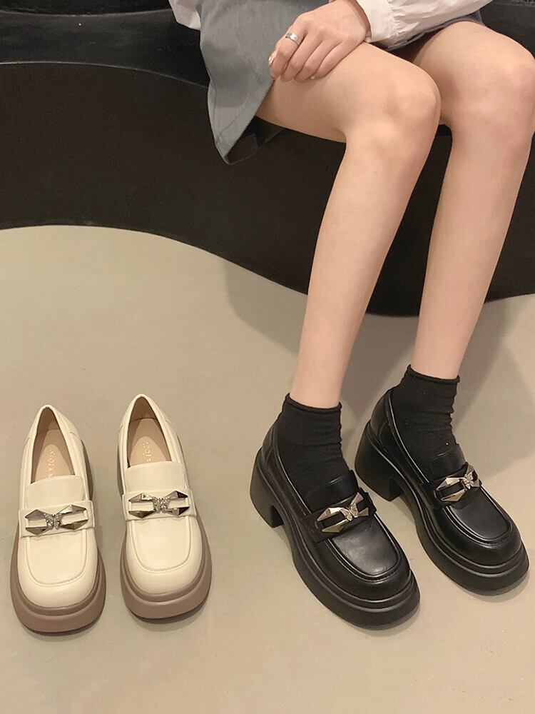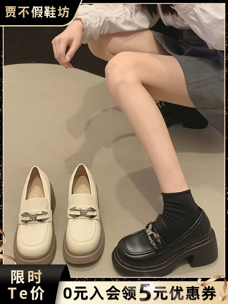 Jia Bujia スタイルのシングルシューズの女性 2023 秋の気質メタルバタフライ多用途で快適な厚底ローファートレンディな 靴 オータム 秋物 jxjxf69712305249