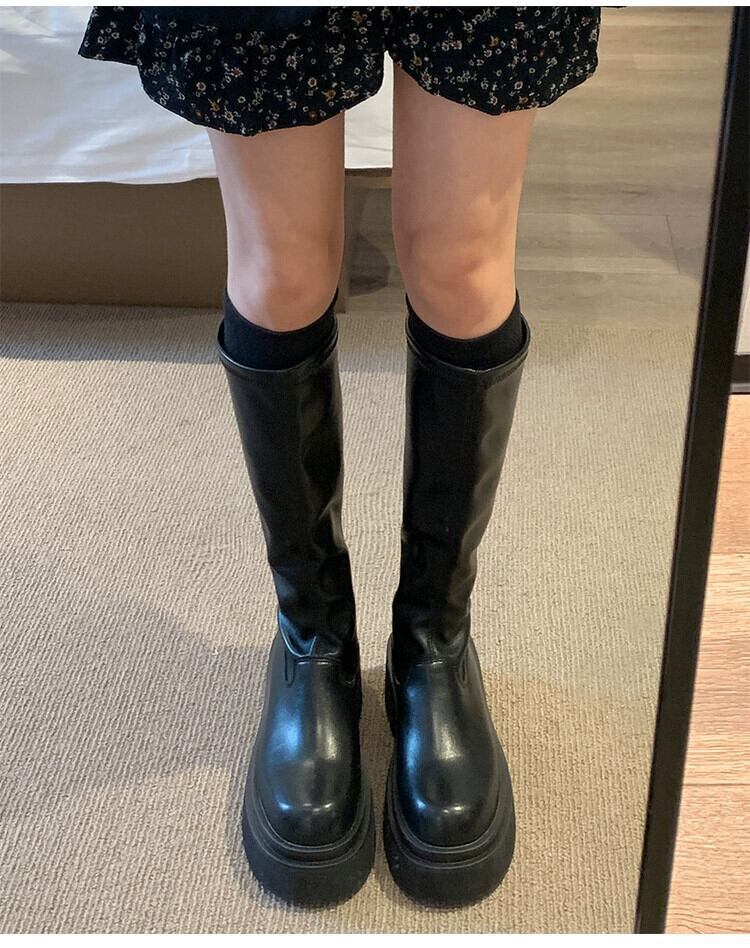Jia Bujia ブーツ レディース ブーツ 2023 秋の新レトロ多用途小型厚底ハンサムスリムブーツトレンディ 靴 シューズ オータム 秋物 jxjxf90659499866