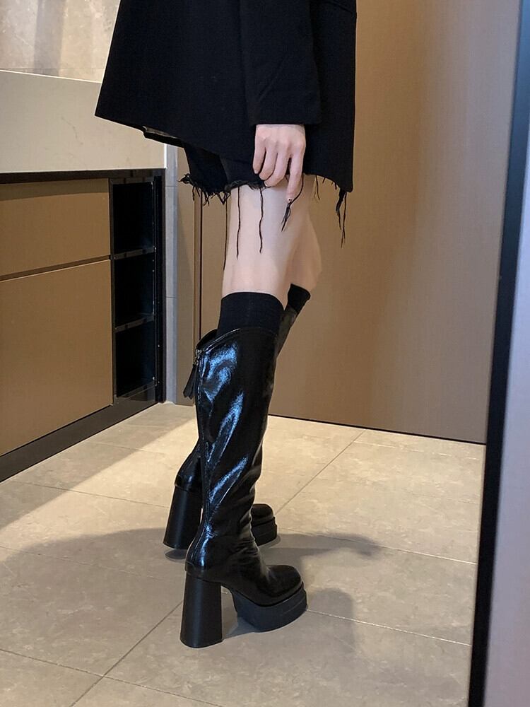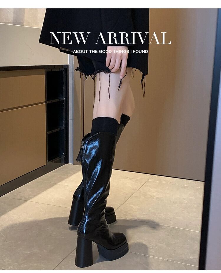 Jia Bufake ブーツの女性 2023 新しい秋のファッション気質多用途厚いヒールスリムブーツトレンディな小人 靴 シューズ オータム 秋物 jxjxf80403110516