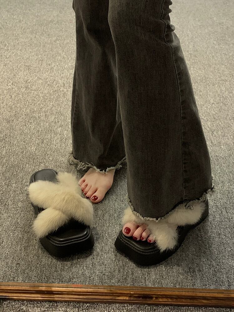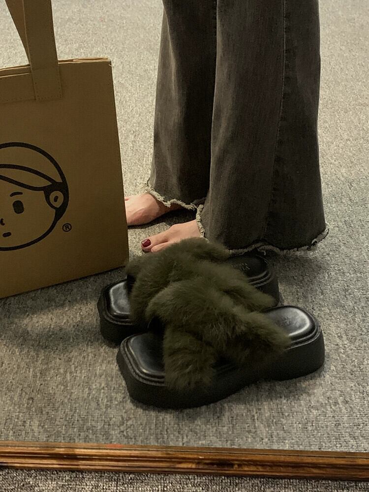 Jia Bu フェイクファーリースリッパレディースアウター 2023 秋有能な気質快適で多用途な厚底スリッポン ミュール 靴 シューズ オータム 秋物 jxjxf30129805564