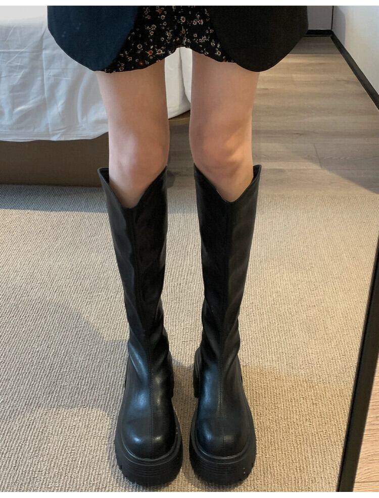 Jia Bufake ブーツの女性 2023 新しい秋のファッション多用途小さな厚いヒール英国スタイルのスリムブーツトレンド 靴 シューズ オータム 秋物 jxjxf65567935098