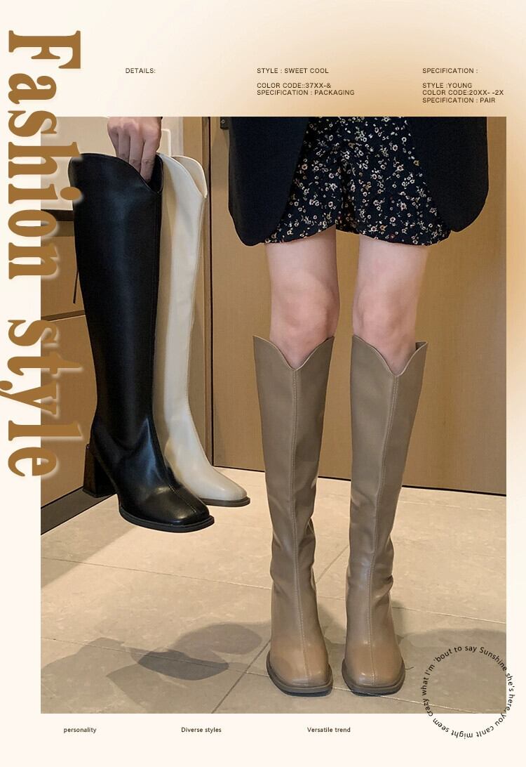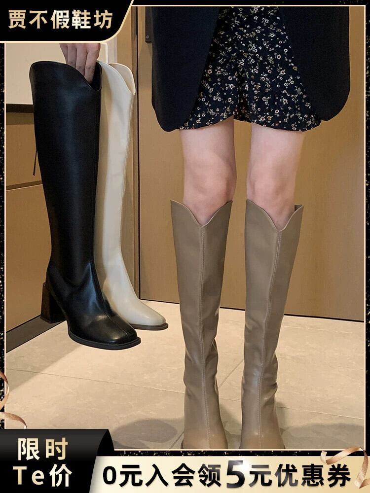 Jia Bujia ニーハイブーツの女性 2023 新しい秋スタイルフレンチレトロ痩身プラスベルベットハイヒールブーツ 靴 シューズ オータム 秋物 jxjxf92052345618