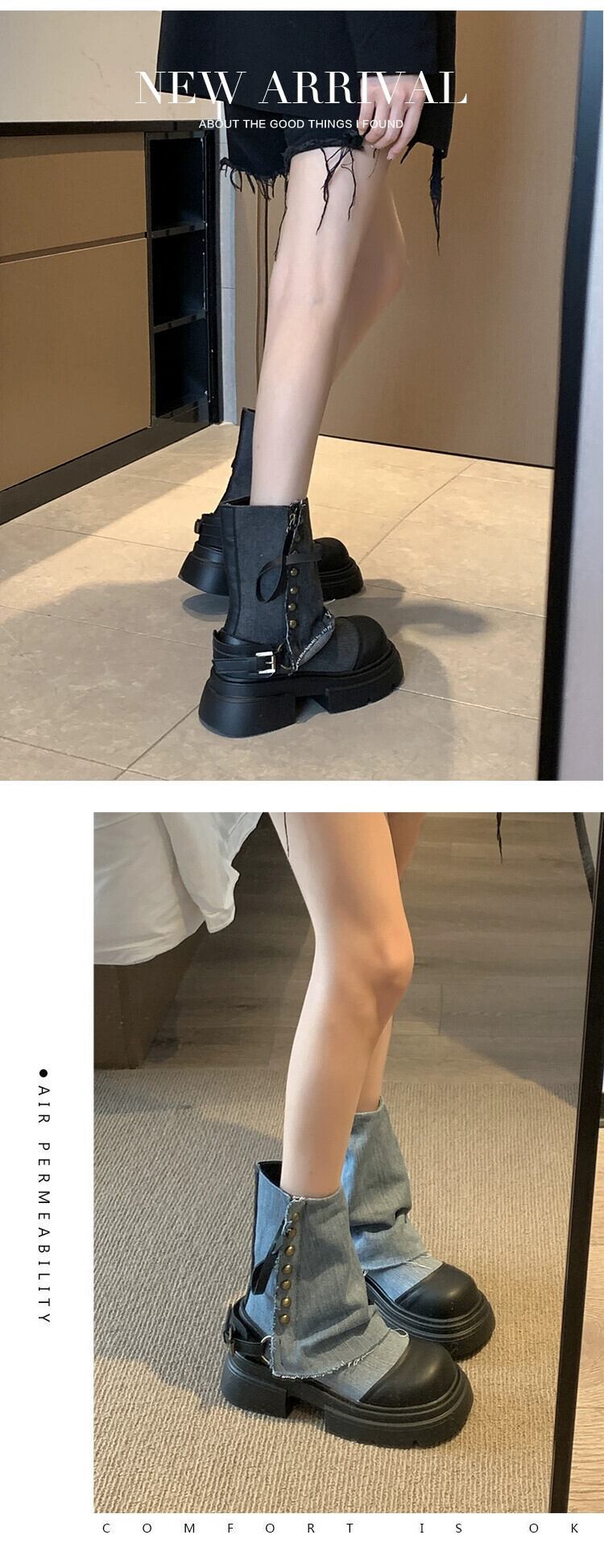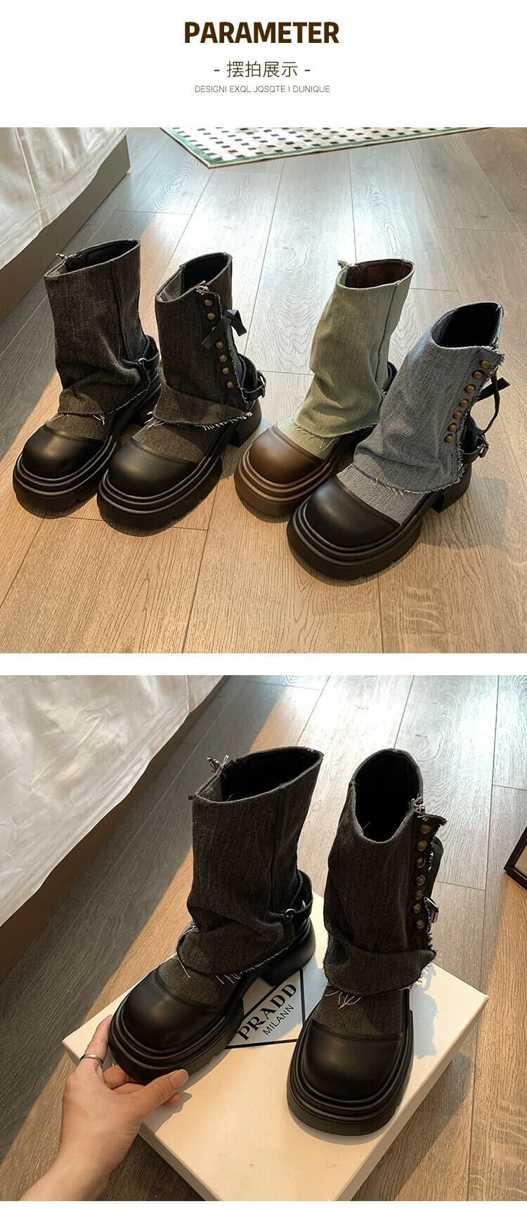 Jia Bujia インターネットセレブショートブーツ女性 2023 秋の新ファッションレトロ痩身 eign スタイル厚底ストリートパンツブーツ 靴 シューズ オータム 秋物 jxjxf33348365410