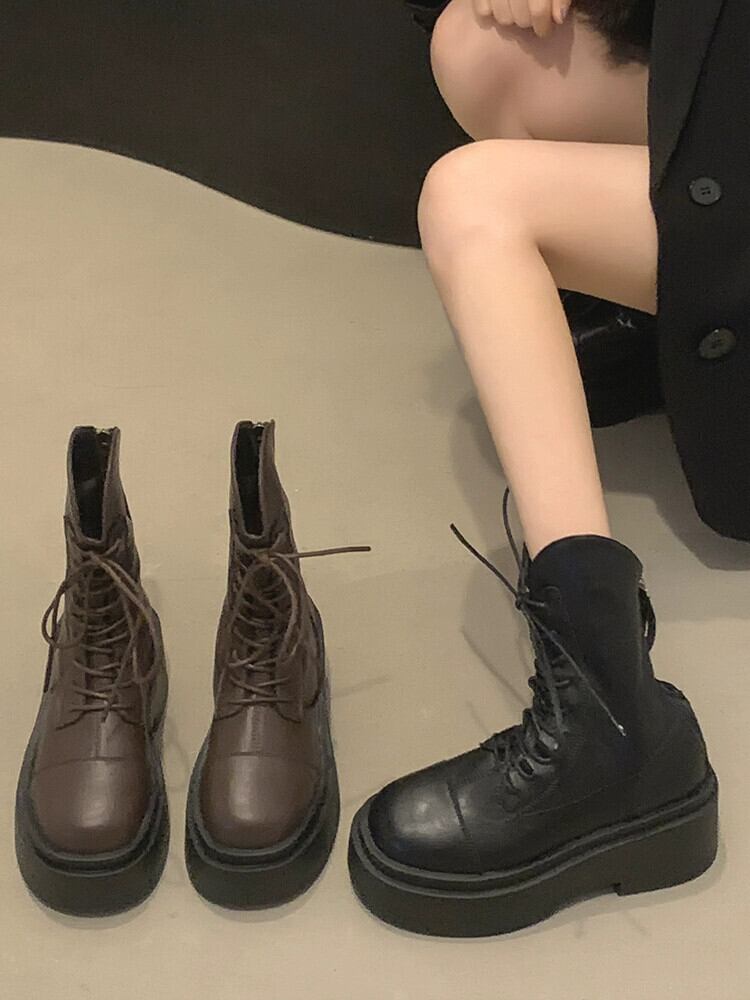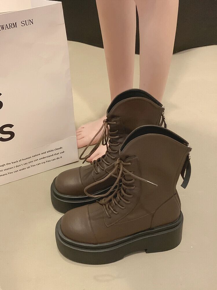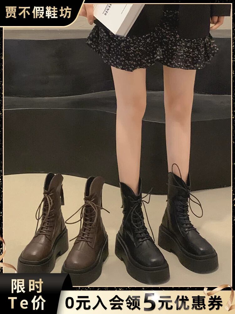 Jia Bujia ショートブーツの女性 2023 秋の新ハンサムなレトロなストリートスタイルアメリカンファッション太いヒールマーティンブーツ 靴 シューズ オータム 秋物 jxjxf67326636194
