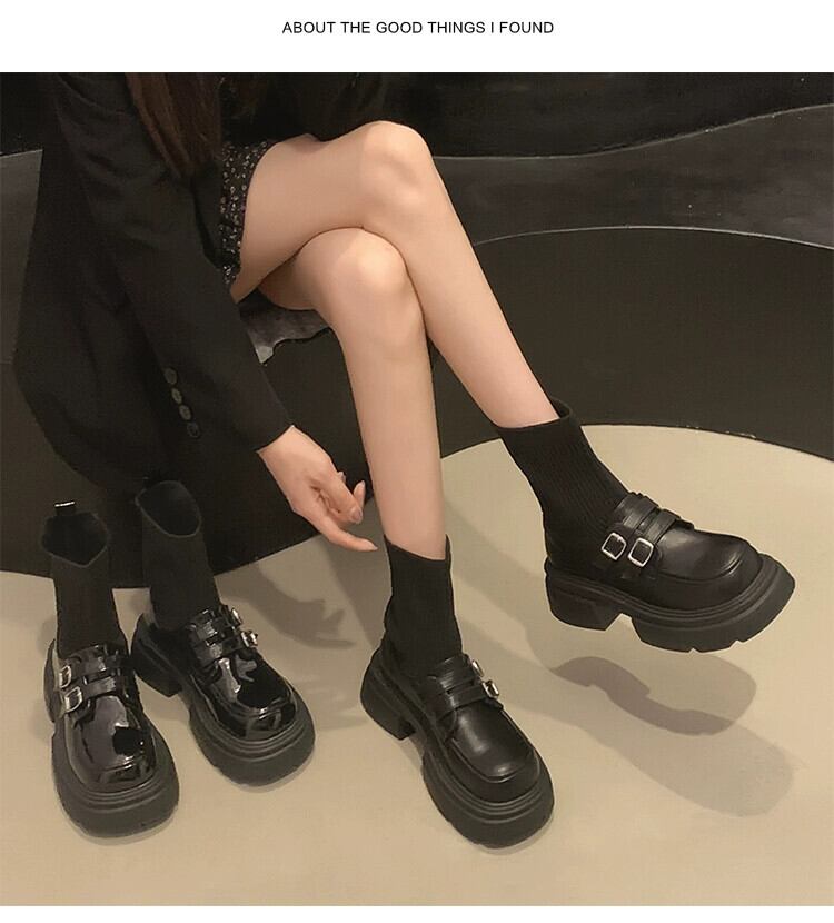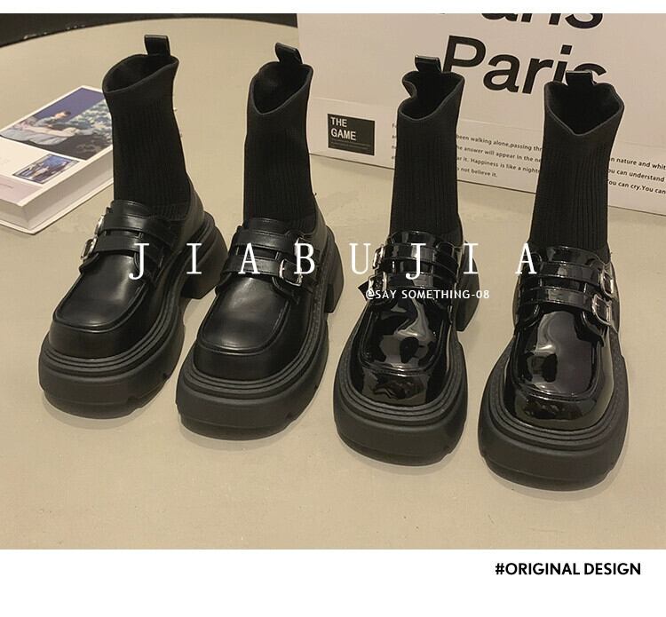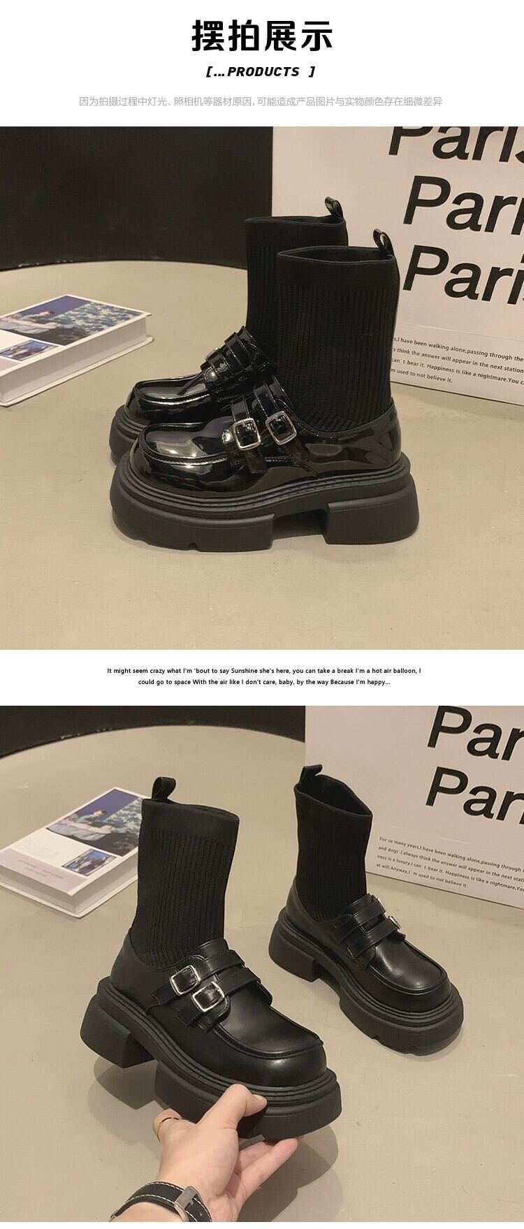 Jia Bufake ソックスブーツ レディース 2023 秋多用途レトロスリム厚底ウエスタンスタイルニットストレッチブーツ 靴 シューズ オータム 秋物 jxjxf92931637675