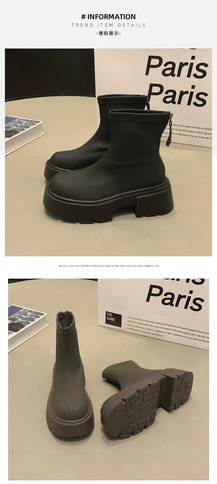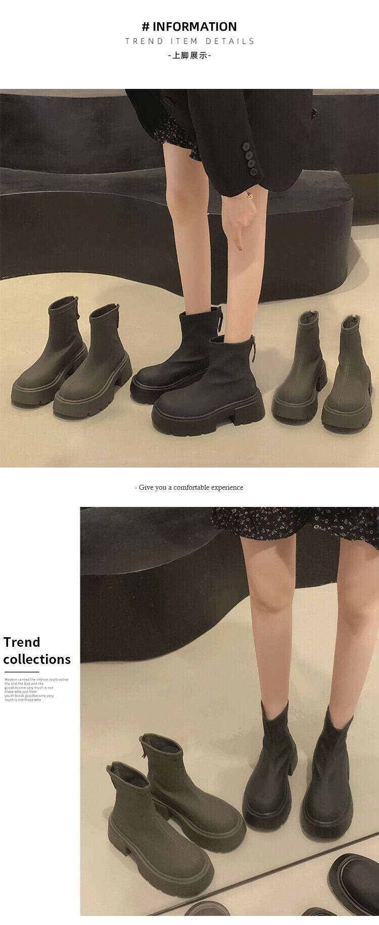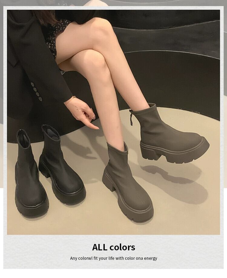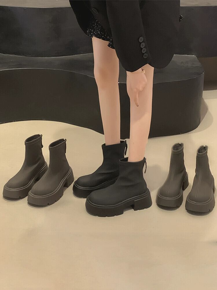 Jia Bujia 女性のネットセレブショートブーツ 2023 秋の新スタイルシンプルなレトロ多用途太いヒールブーツ小人 靴 シューズ オータム 秋物 jxjxf52595092508