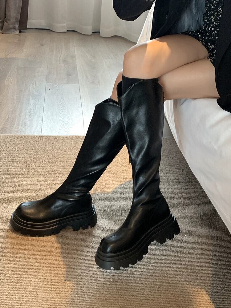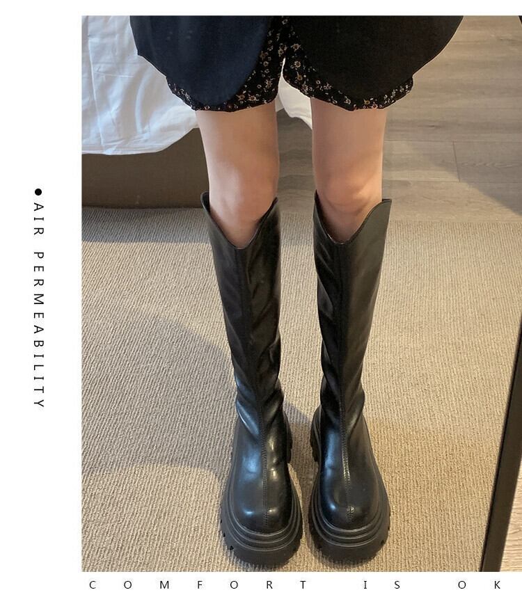 Jia Bujia インターネットセレブの太いヒールノーニーブーツ 2023 秋の新作レトロ多用途アインスタイル騎士ブーツトレンド 靴 シューズ オータム 秋物 jxjxf71215640807