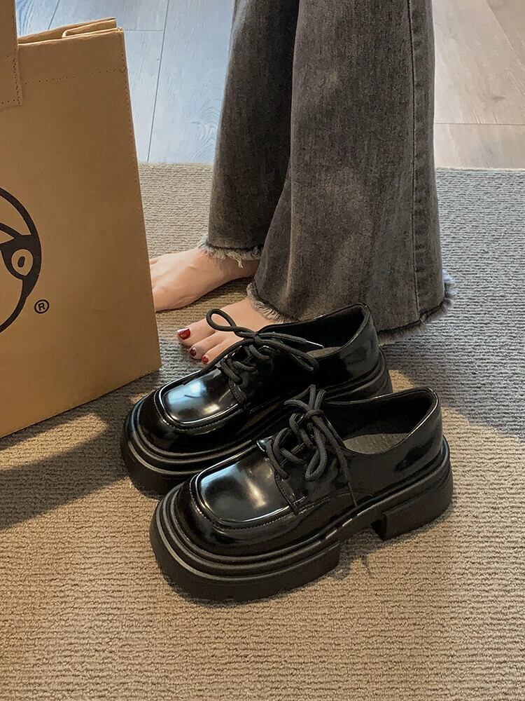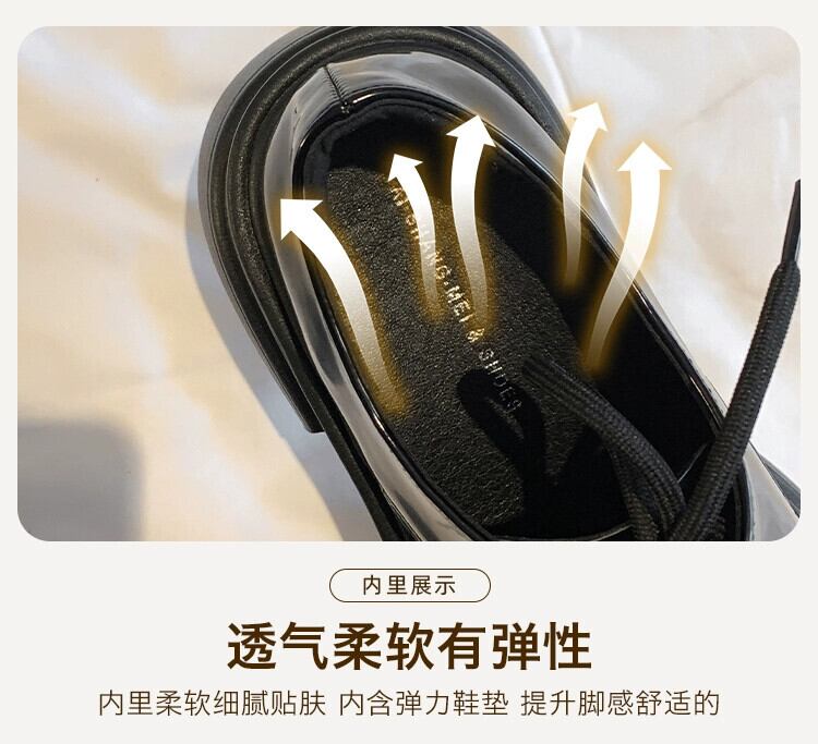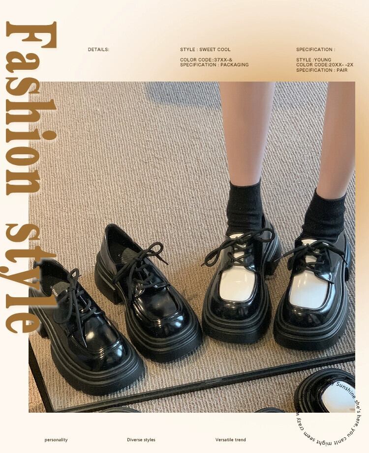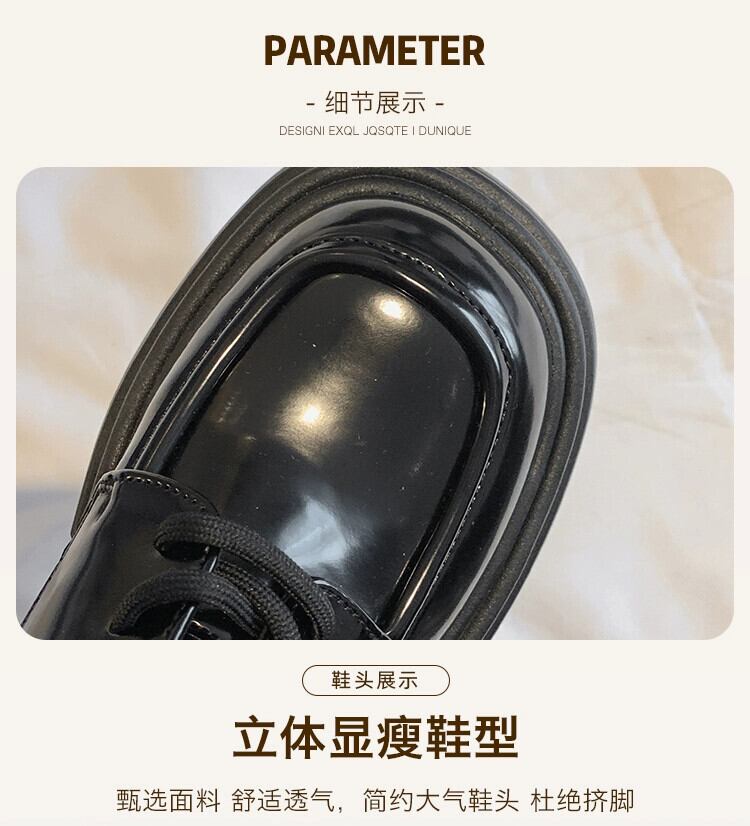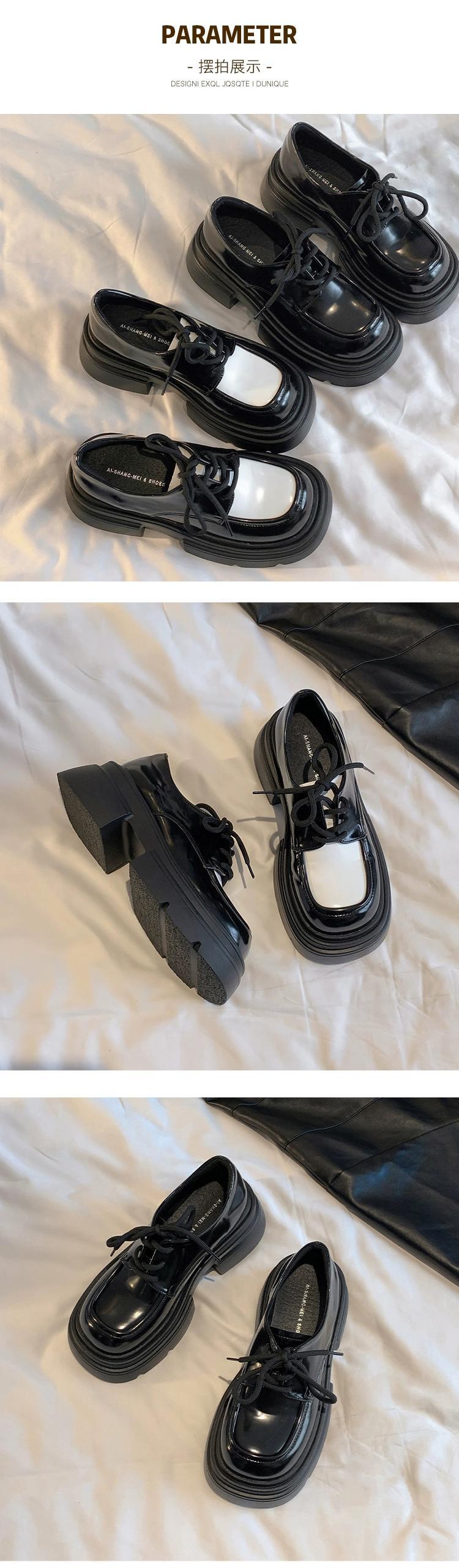 Jia Bujia スクエアトゥ太いヒールの小さな革の靴の女性の 2023 秋レトロスタイル増加メリージェーンの靴 シューズ オータム 秋物 レザー スクウェア jxjxf37560994132