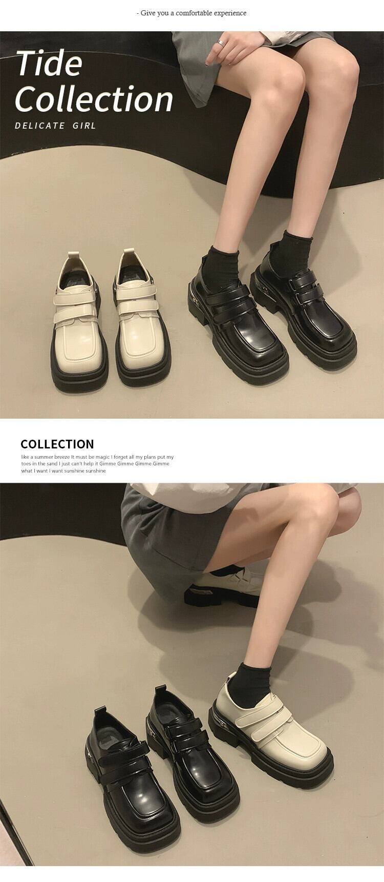 Jia Bujia 秋メリージェーンの女性の靴 2023 スタイル可能なシンプルなスクエアトゥ増加太いヒールの小さな革の靴 シューズ オータム 秋物 レザー スクウェア jxjxf80055738239
