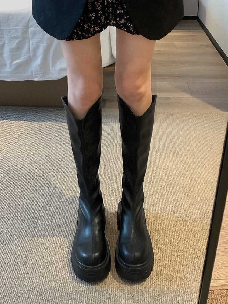 Jia Bujia 秋の太いヒールロングブーツの女性の 2023 秋の気質フレンチレトロ多用途スリムブーツ 靴 シューズ オータム 秋物 jxjxf64879803869