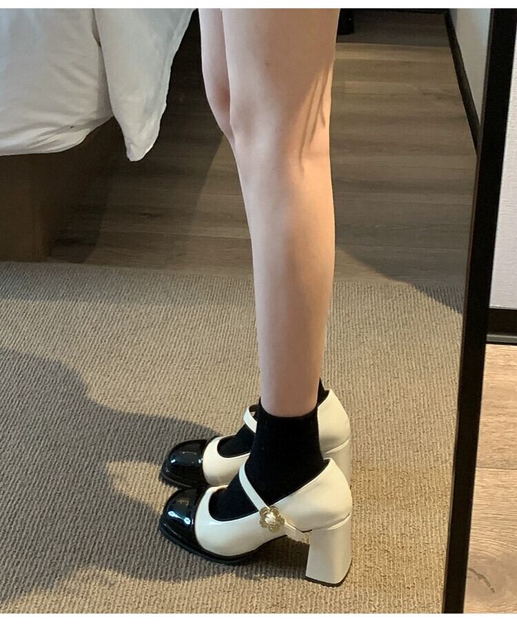 Jia Bufake メリージェーンの靴の女性 2023 新しい秋レトロスタイルフレンチスタイル太いヒールトレンディなハイヒール シューズ オータム 秋物 jxjxf2368590250