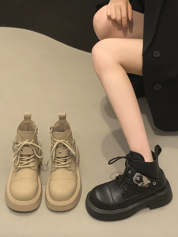 Jia Bujia ビッグイエローブーツ女性の 2023 秋スーパーホットでハンサムなアメリカンメタルバタフライ厚いヒールマーティンブーツ 靴 シューズ オータム 秋物 jxjxf9829109362