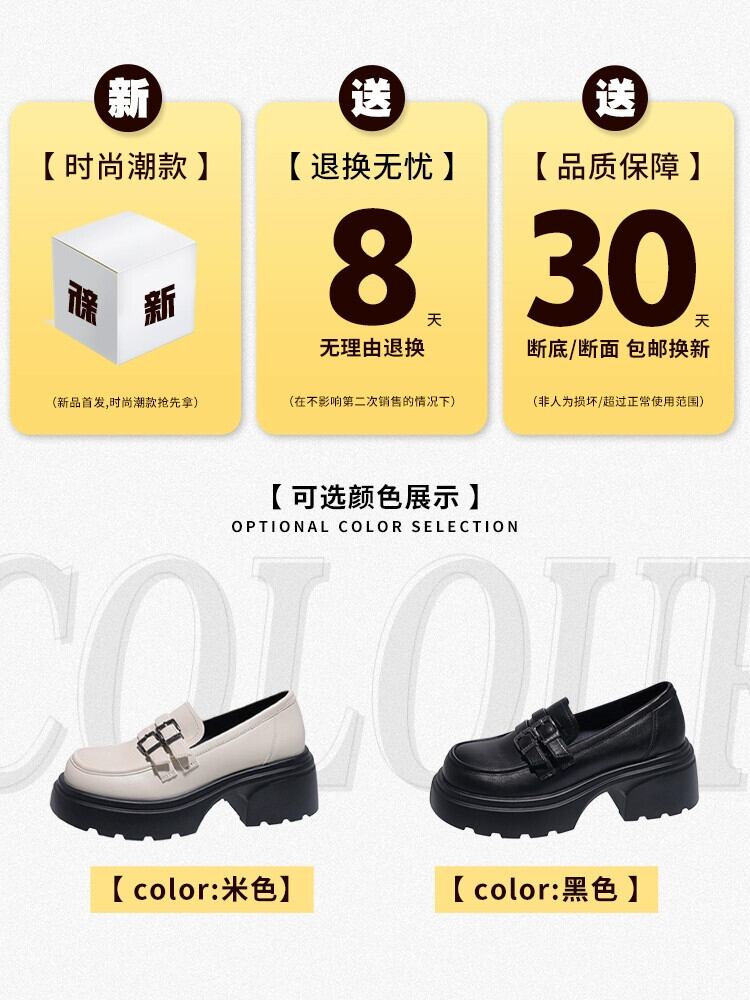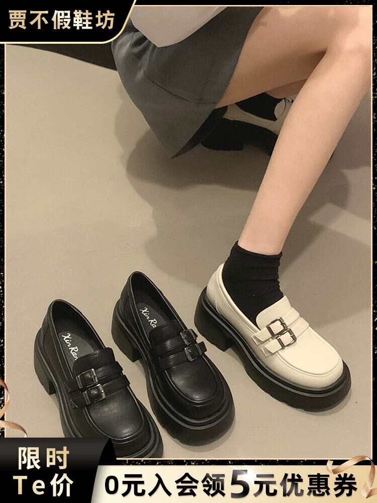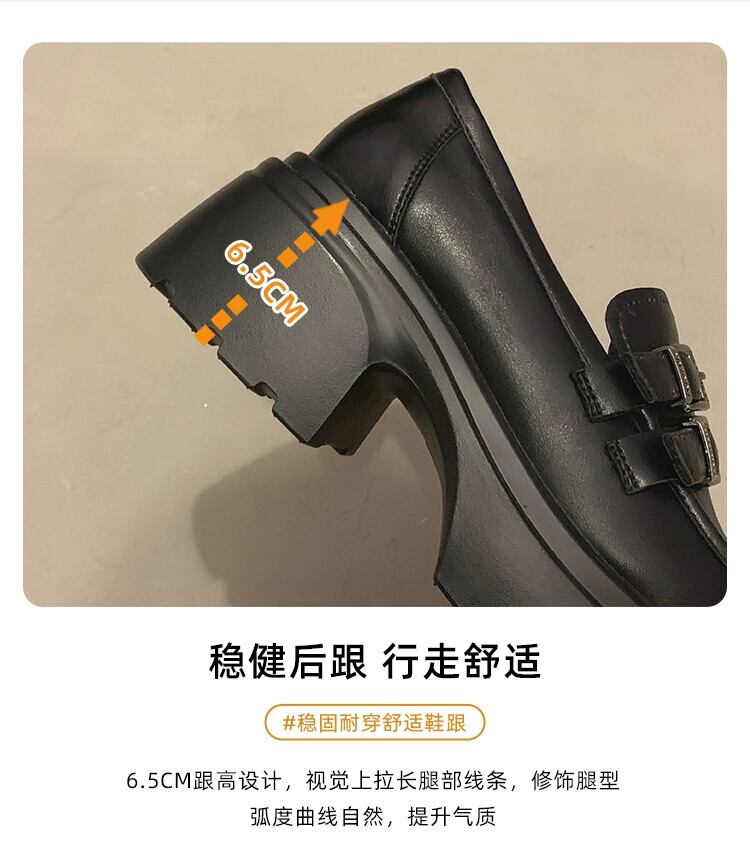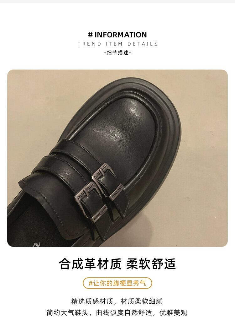 Jia Bujia インターネット有名人のシングルシューズの女性 2023 秋の新ファッションベルトバックル小さな厚いヒール ese 小さな革の靴 オータム 秋物 レザー ハーネス jxjxf54627252322