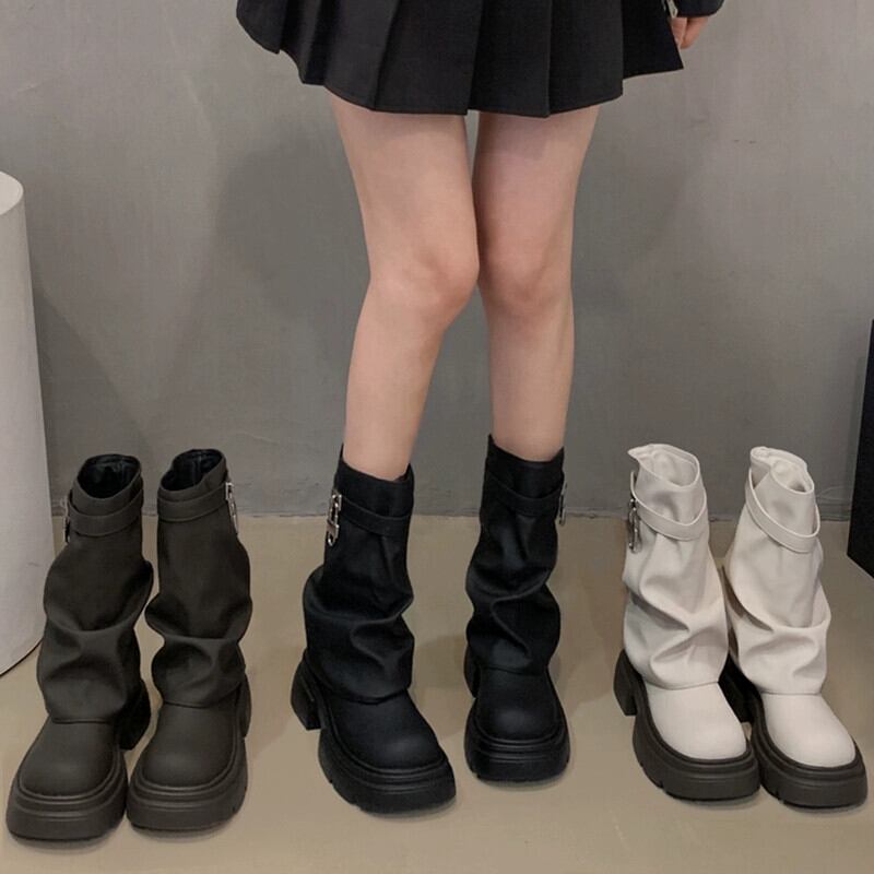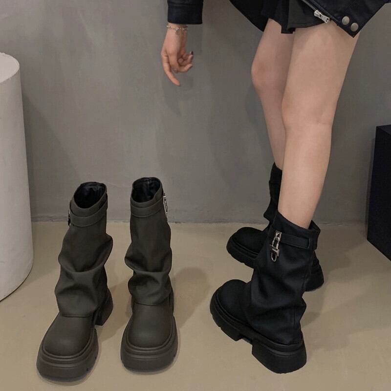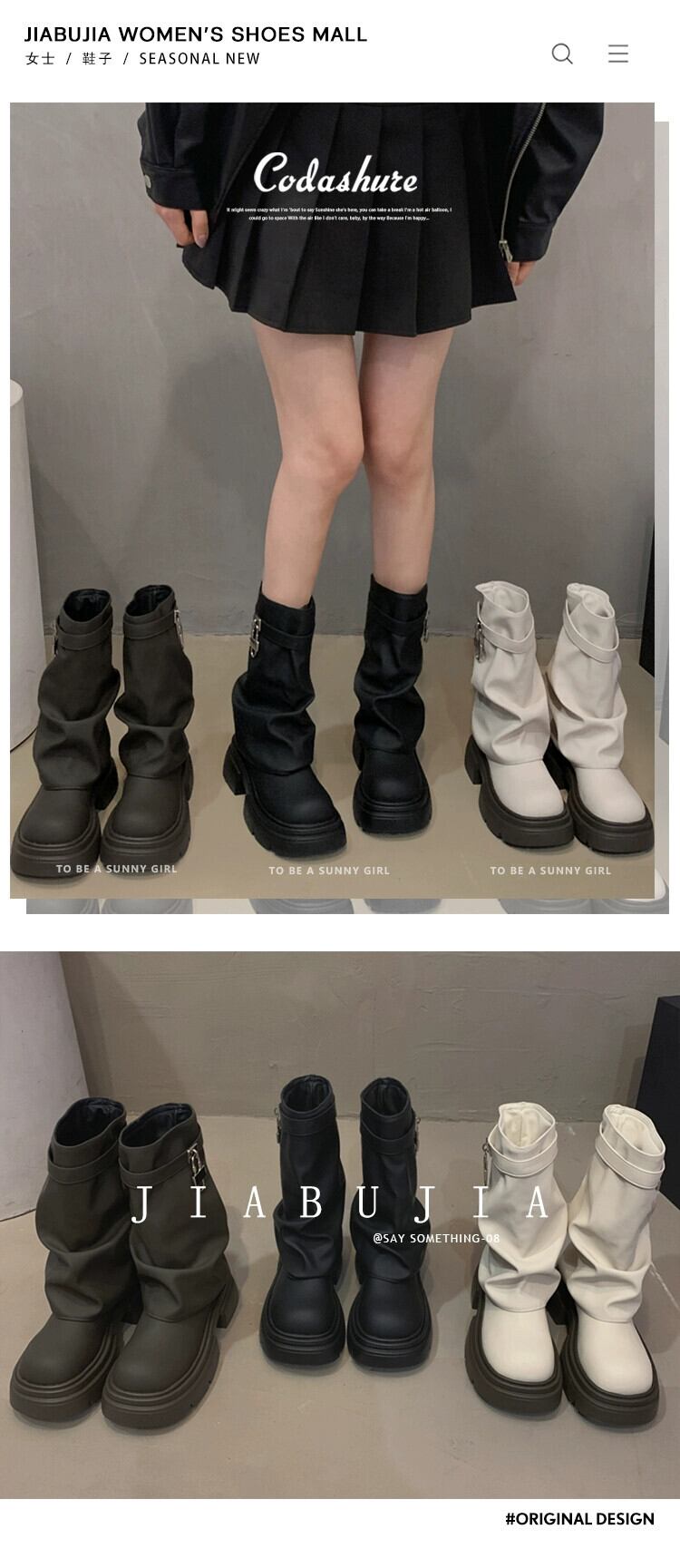 Jia Bujia インターネット有名人ショートブーツ女性 2023 新しい秋のファッション多用途レトロハンサム厚底アーケードオートバイブーツ 靴 シューズ オータム 秋物 jxjxf75437438705