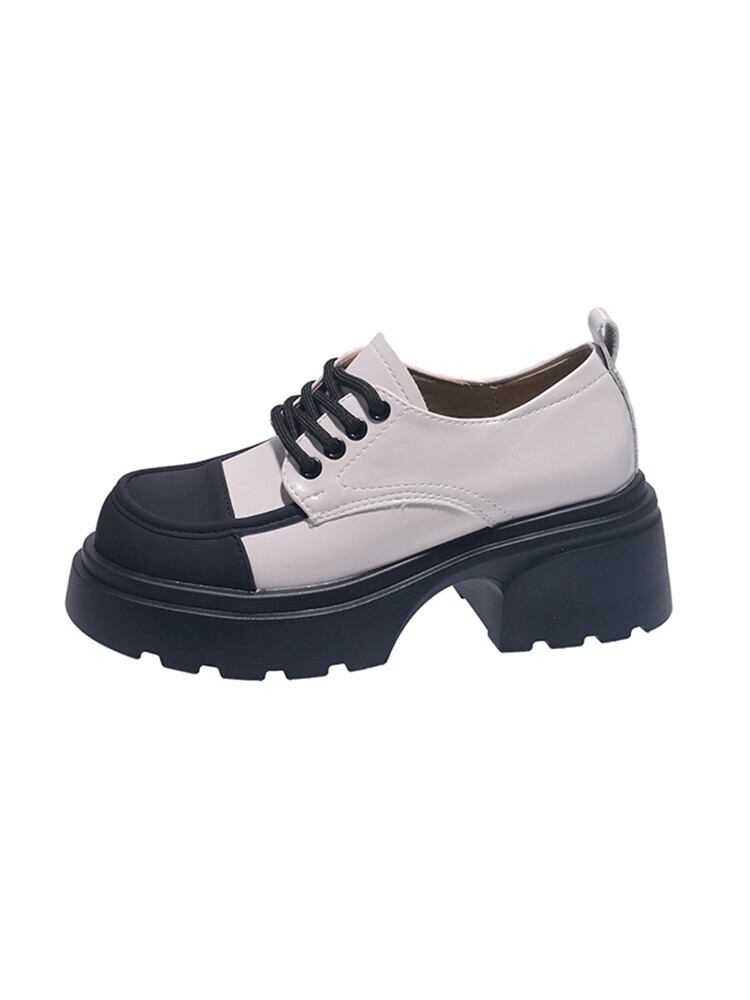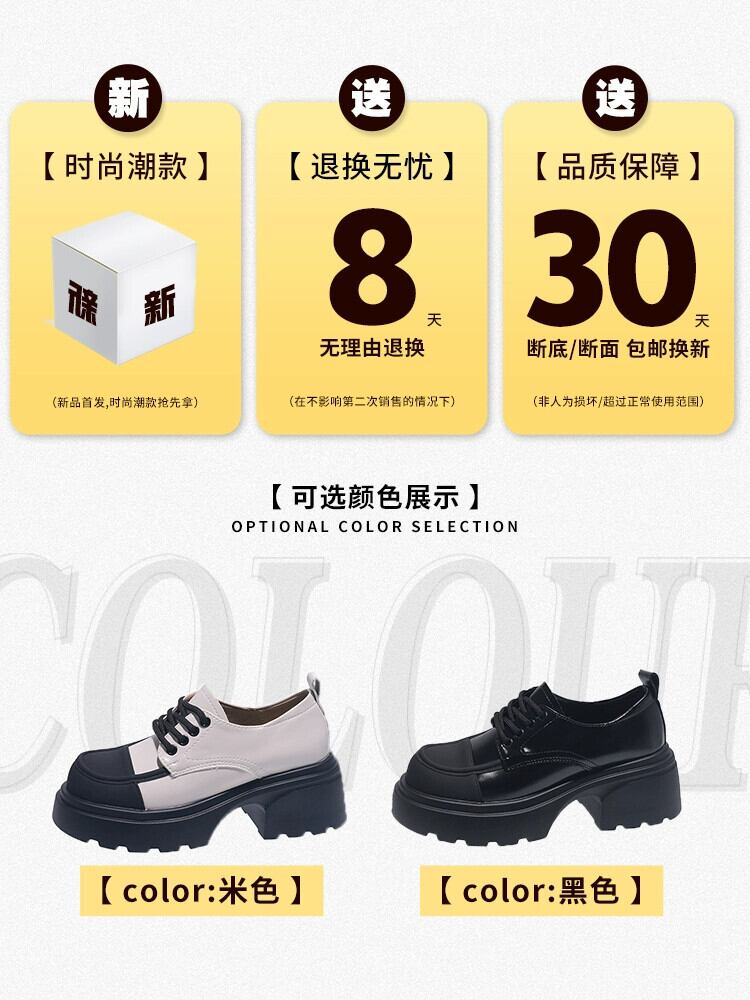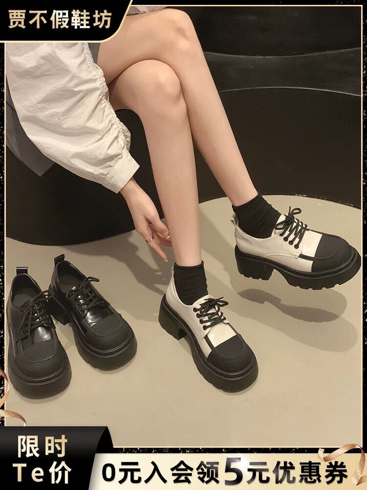 Jia Bujia 英国スタイルの厚いヒールの小さな革の靴 2023 秋の新スタイルのレトロな強化カジュアルスタイルの靴 シューズ オータム 秋物 レザー jxjxf20762584131