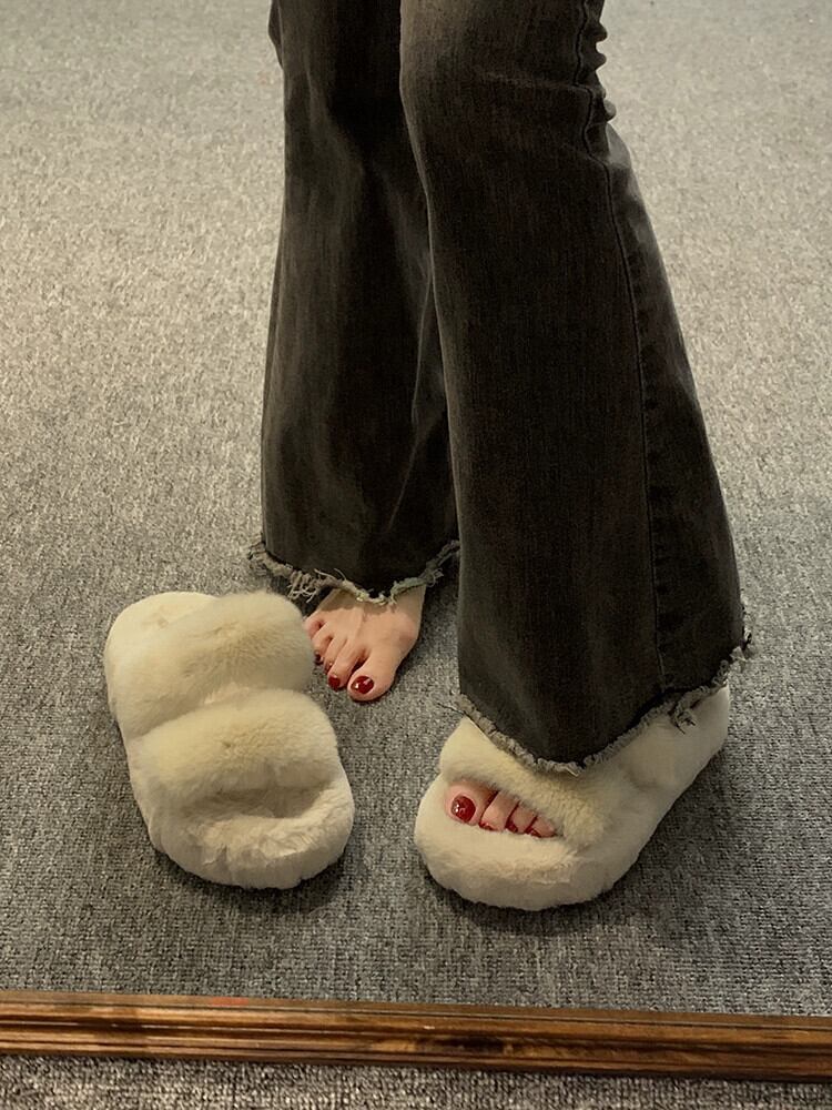 Jia Bu のフェイクファーリースリッパレディースアウター 2023 秋の新ファッション多用途レトロ comtable 厚底ワンラインスリッパトレンディ ミュール 靴 シューズ オータム 秋物 jxjxf51926587537