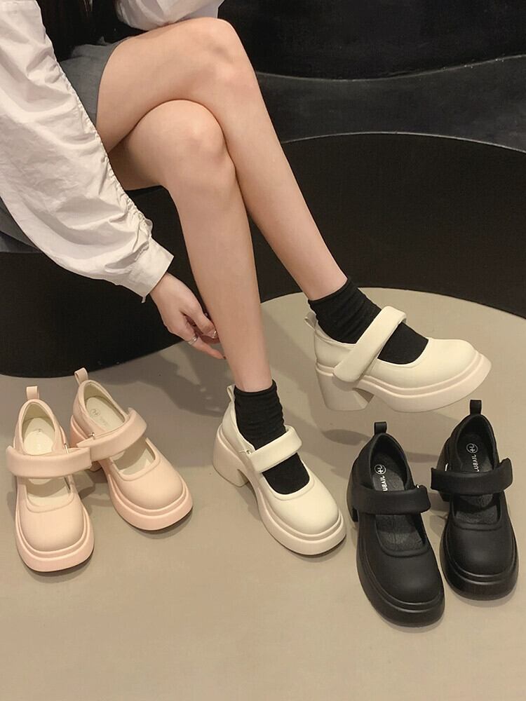 Jia Bujia メリージェーンシューズの女性、2023 秋の新スタイルのフレンチスタイルのベルクロ高めの小さな革靴 オータム 秋物 レザー jxjxf3254853198
