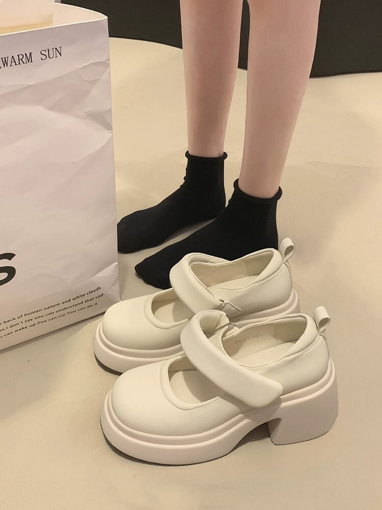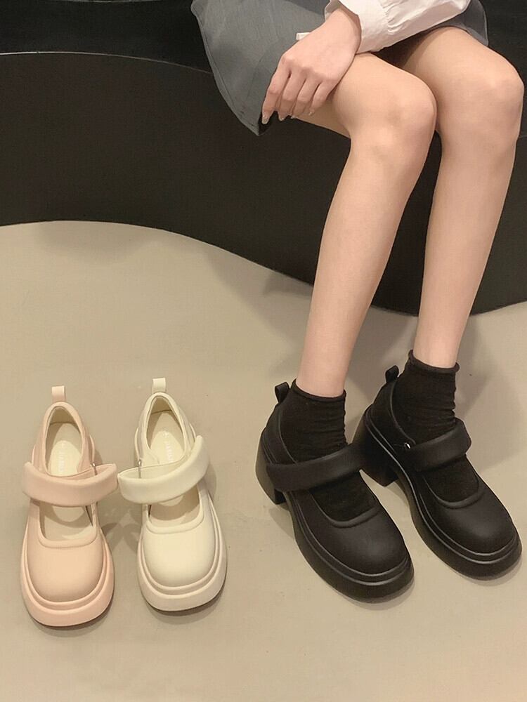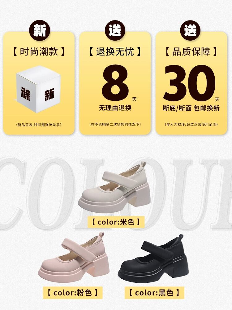 Jia Bujia メリージェーンの靴の女性 2023 新しい秋のスタイルシンプルでファッショナブルなフランス太いヒールの小さな革の靴 シューズ オータム 秋物 レザー jxjxf90995522039