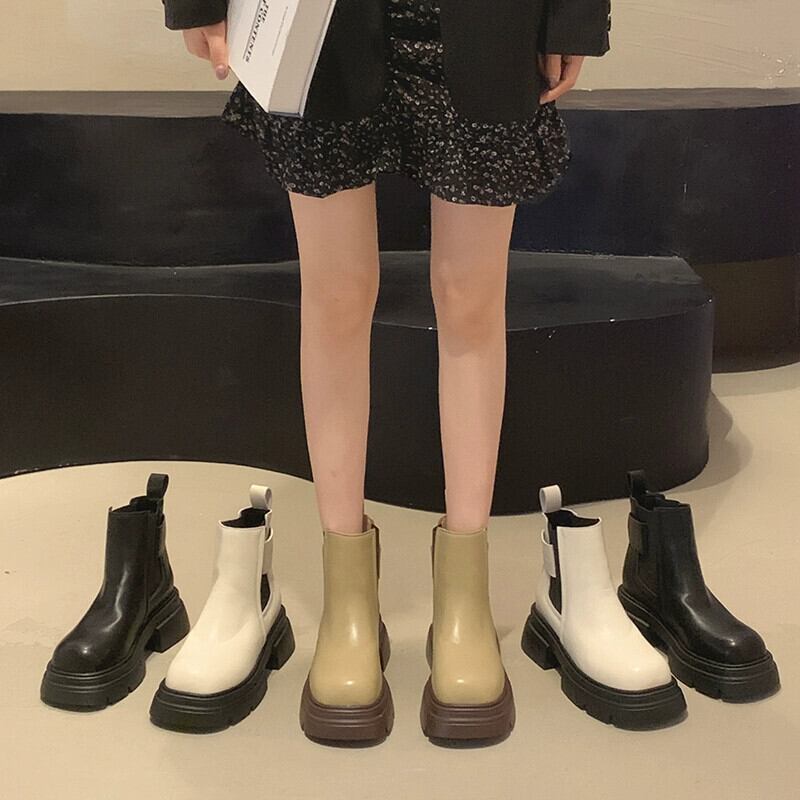 Jia Bufake 厚いヒールチェルシーブーツの女性 2023 秋の新ファッショントレンドレトロフランスの気質ショートブーツ 靴 シューズ オータム 秋物 jxjxf26669330000