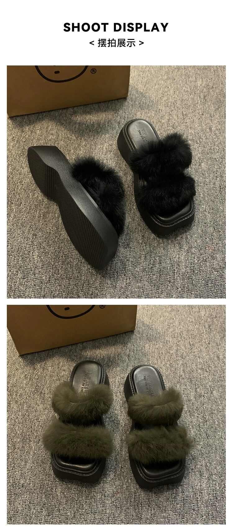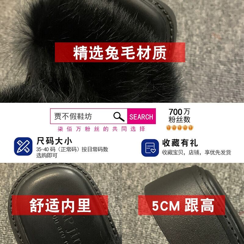 Jia Bujia スリッパ女性外出 2023 新しい秋のレトロなスタイルの快適で多用途な厚底ファースリッパ ミュール 靴 シューズ オータム 秋物 jxjxf74698295553