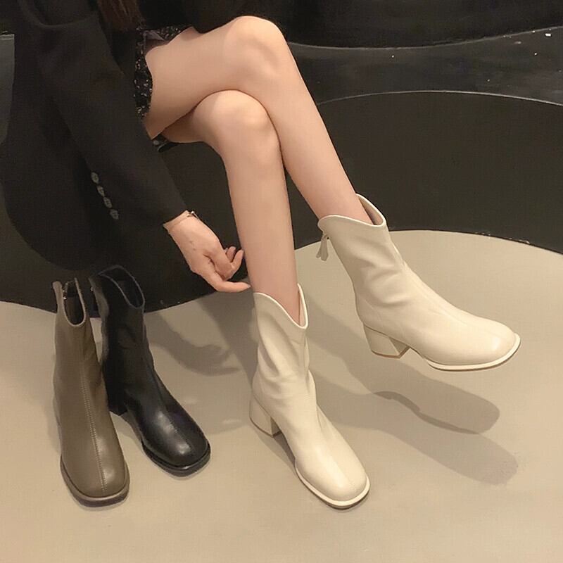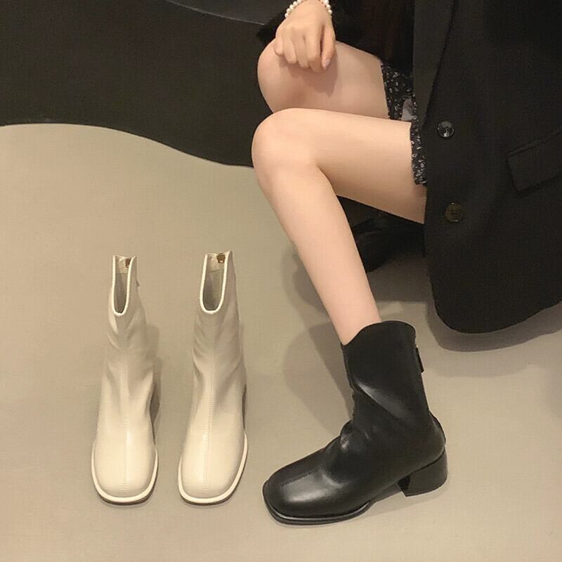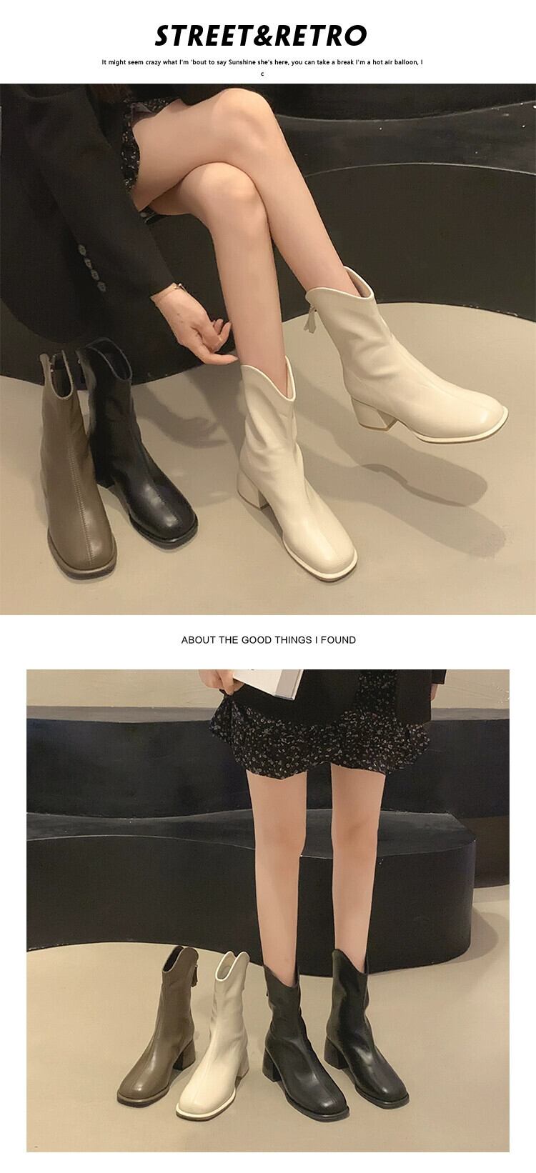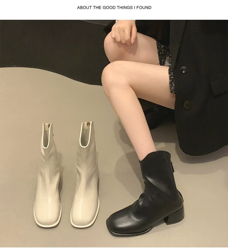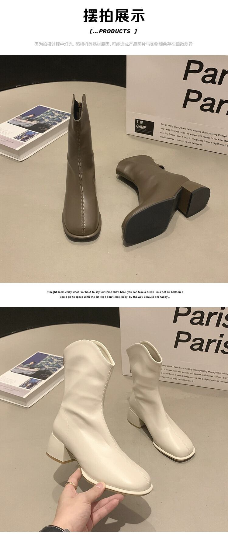 Jia Bujia ブーツの女性のショートブーツ 2023 新しい秋のファッション多用途フレンチレトロな eign スタイル太いヒールスリムブーツ 靴 シューズ オータム 秋物 jxjxf87506949706