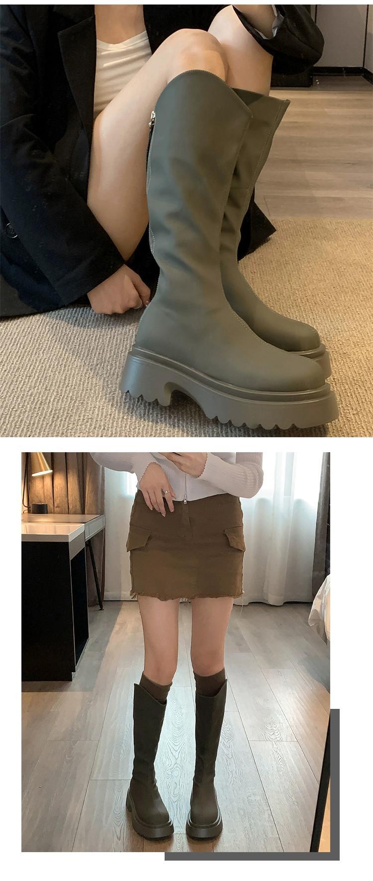 Jia Bufake ブーツの女性 2023 秋の新ファッション多用途レトロハンサム厚底英国スタイルの騎士のブーツ 靴 シューズ オータム 秋物 jxjxf92897956060