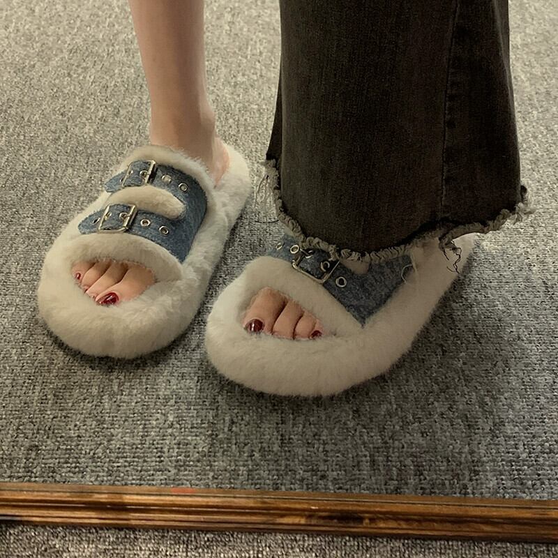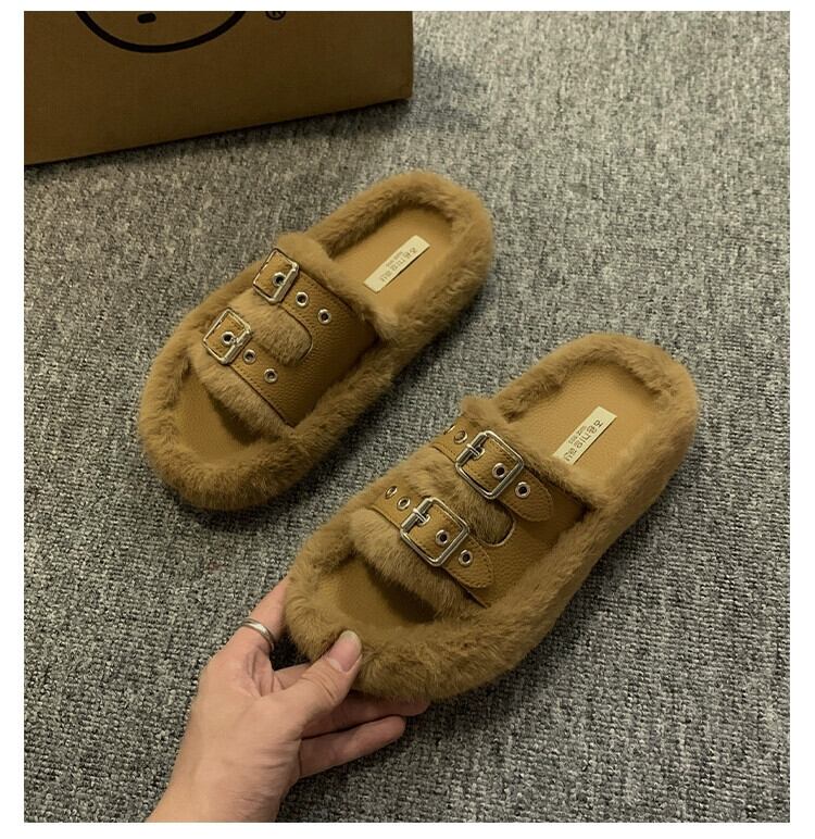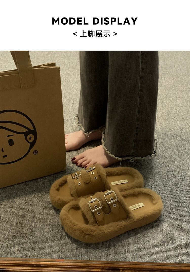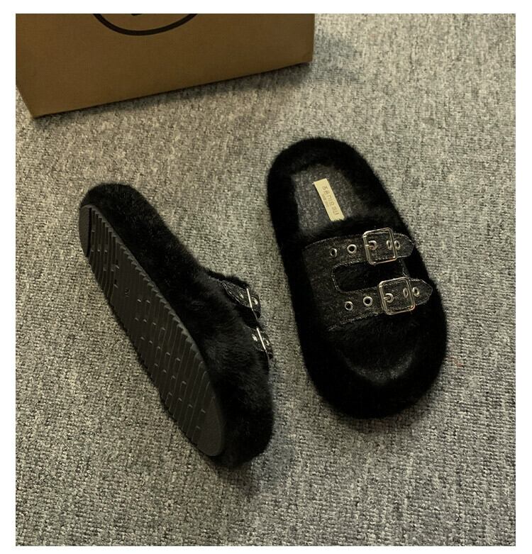 Jia Bujia 厚底スリッポンスリッパ女性、2023 秋の新しいレトロスタイルのベルトバックル、トレンディなスリッパ ミュール 靴 シューズ オータム 秋物 ハーネス jxjxf28280633606