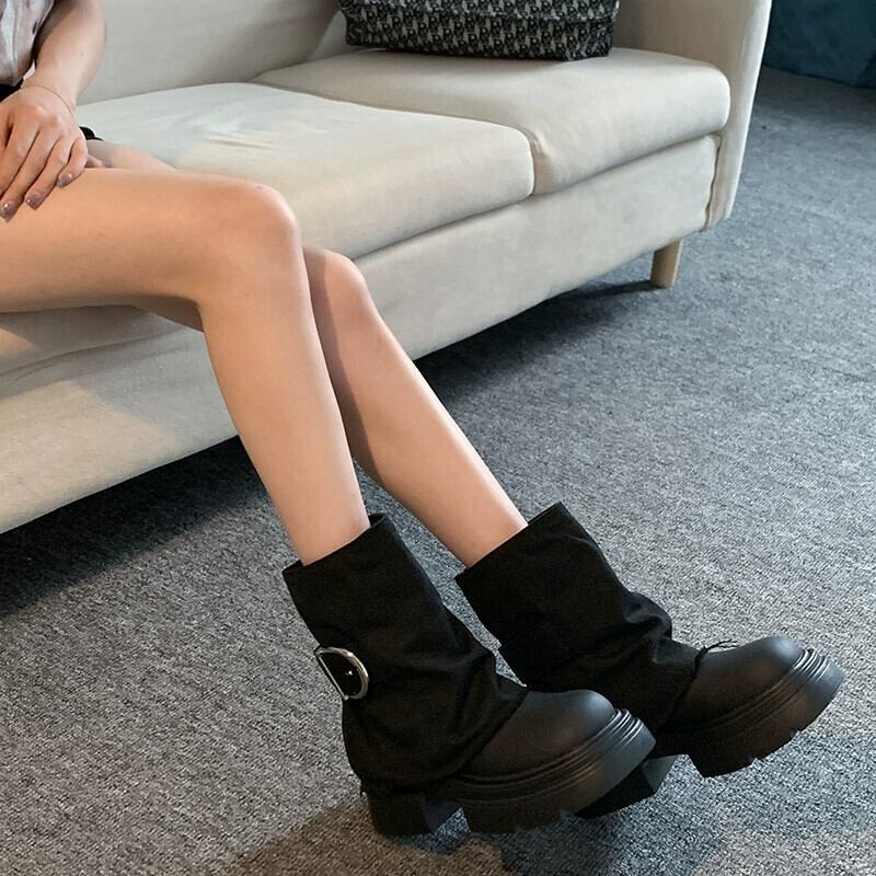 Jia Bujia ショートブーツ女性 2023 秋スタイル超ホットと多用途レトロハンサム厚底ストリートパンツブーツトレンディ 靴 シューズ オータム 秋物 jxjxf27712257256