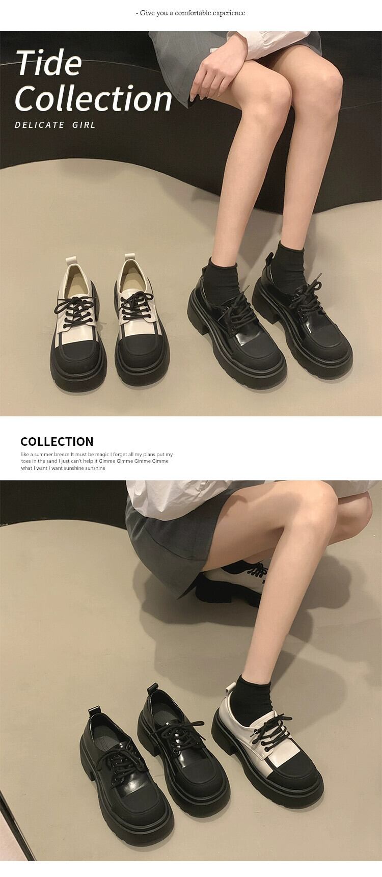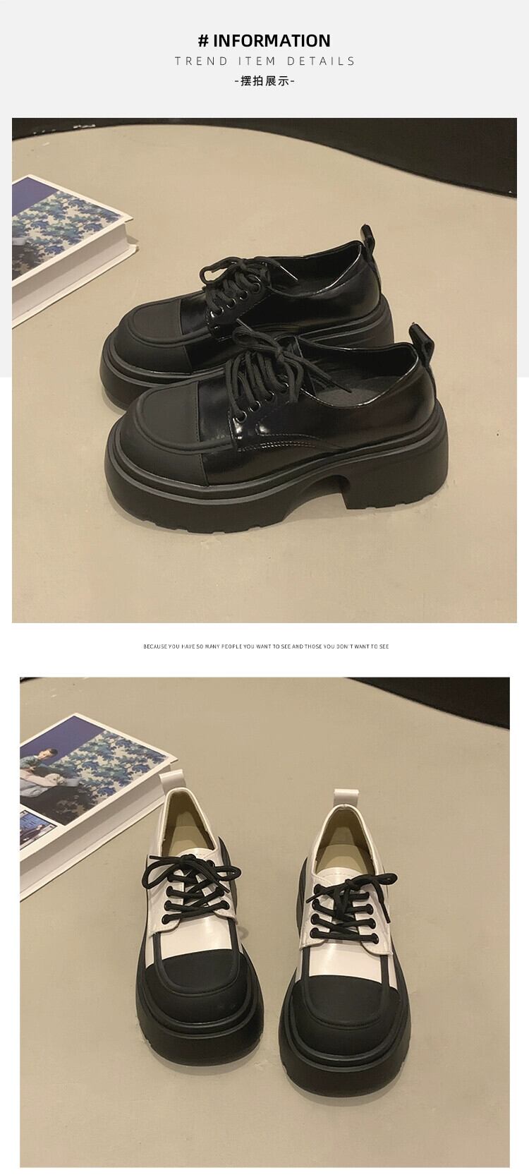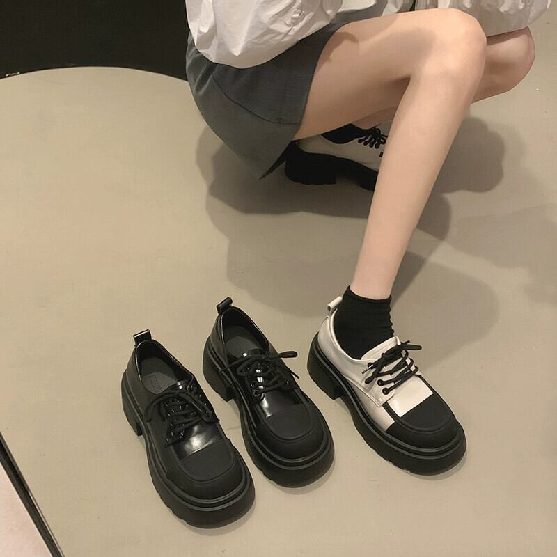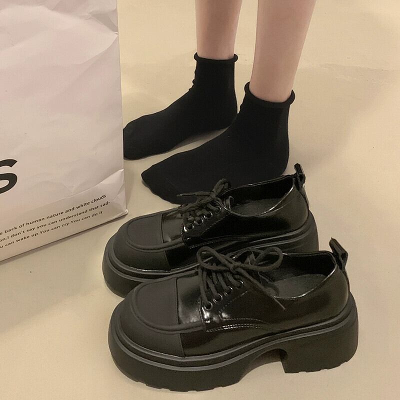 Jia Bujia レトロ英国スタイルの小さな革の靴の女性 2023 新しいローファー黒秋と冬の厚底強化靴 シューズ ブラック オータム 秋物 ウィンター 冬物 レザー jxjxf50939408367