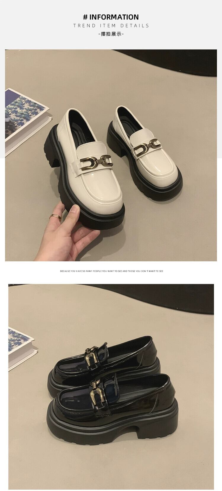 Jia Bujia 秋の女性の厚いヒールローファー 2023 フレンチレトロな気質金属高める小さな革の靴 シューズ オータム 秋物 レザー jxjxf42708639532
