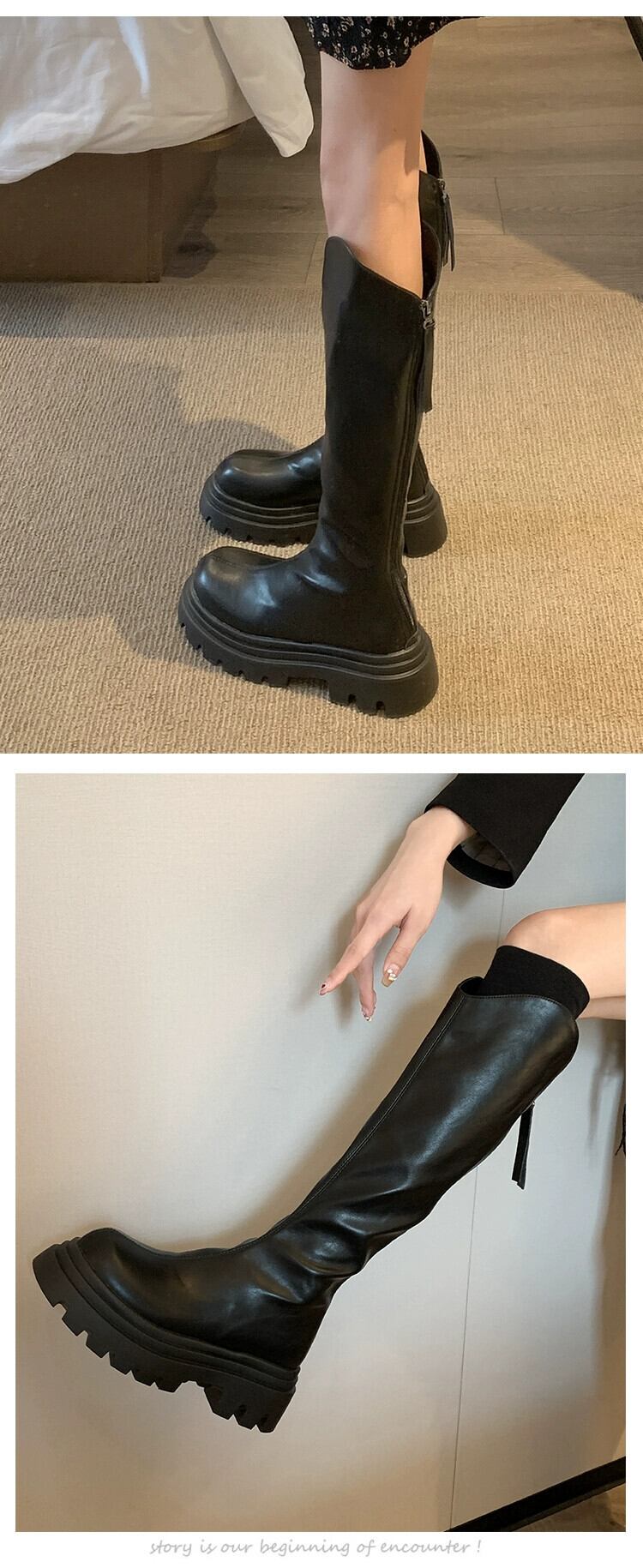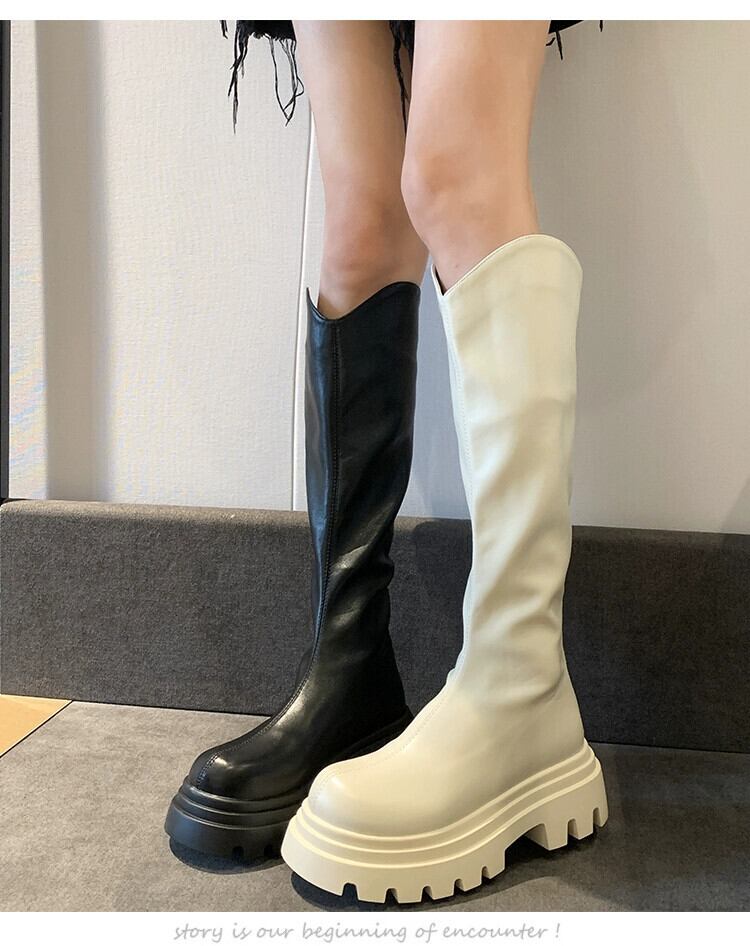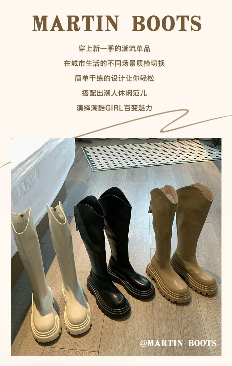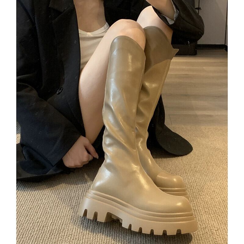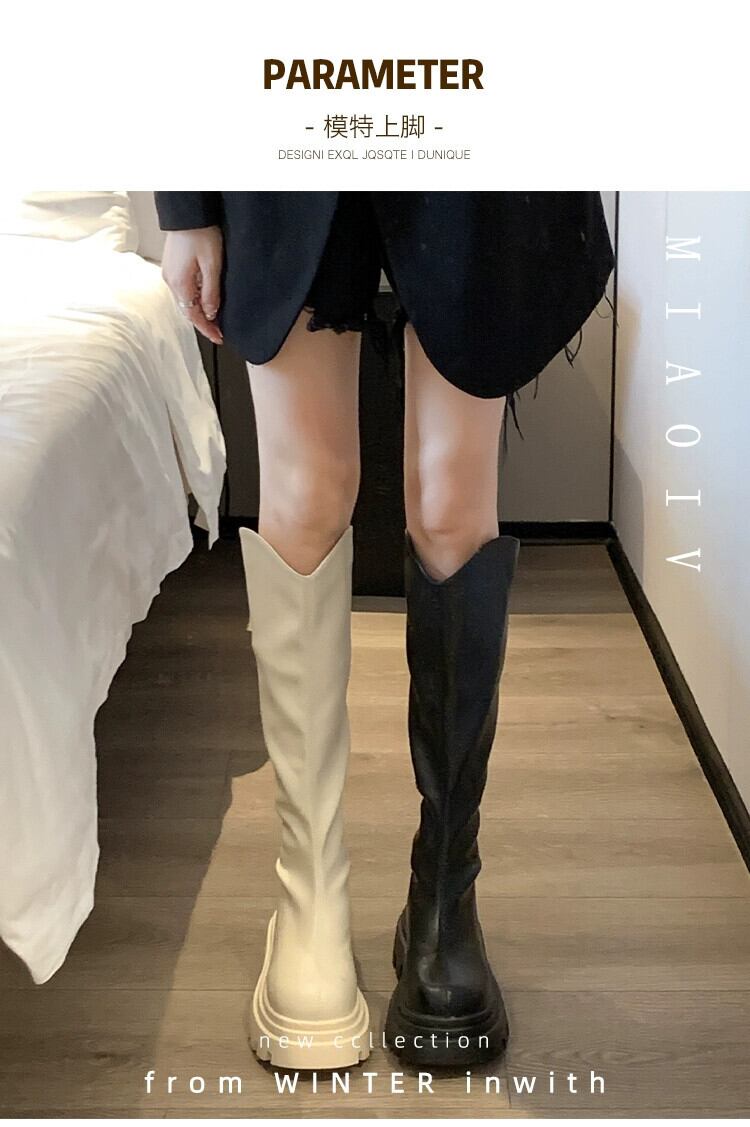 Jia Bujia ニーハイブーツの女性の 2023 新しい秋スタイルシンプルなレトロな気質ファッショナブルな厚底スリムブーツ 靴 シューズ オータム 秋物 jxjxf44553298119