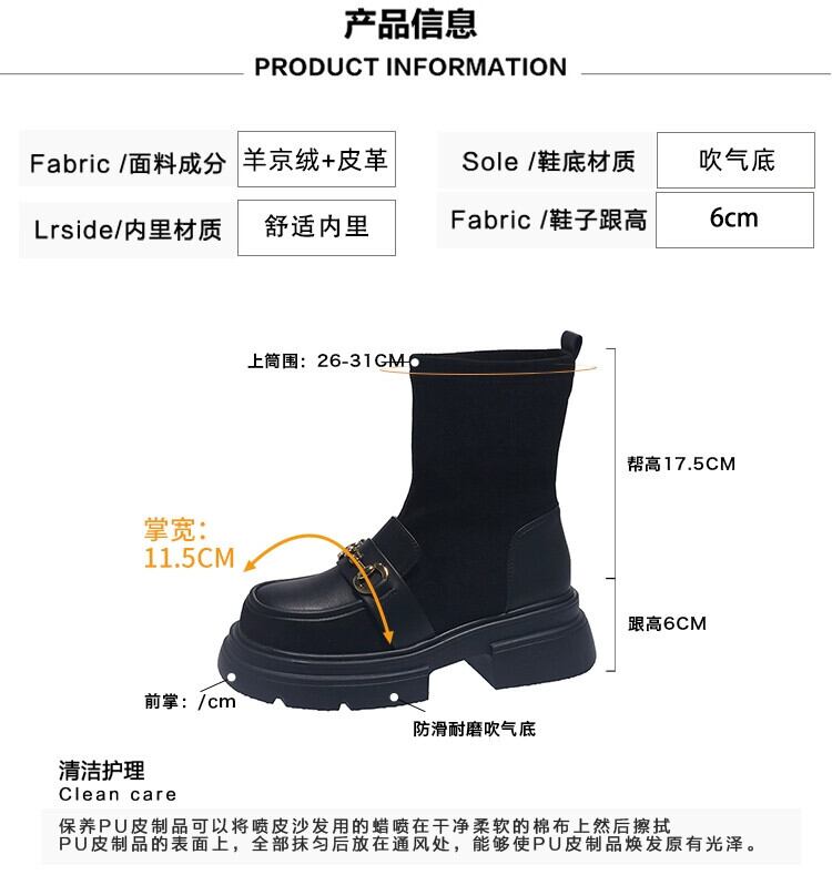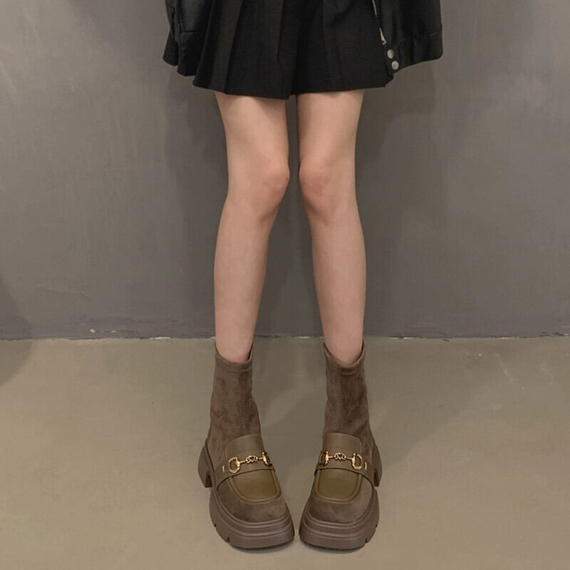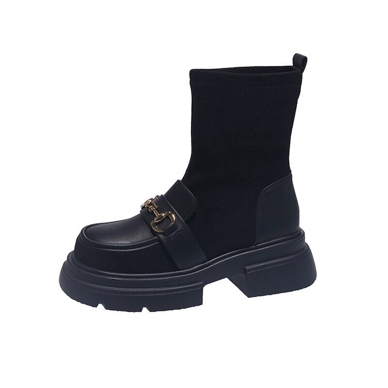 Jia Bujia 弾性ショートブーツ女性 2023 秋の新ファッション多用途レトロスタイルメタル厚底スリムブーツ 靴 シューズ エラスティック 伸縮 オータム 秋物 jxjxf87212988351
