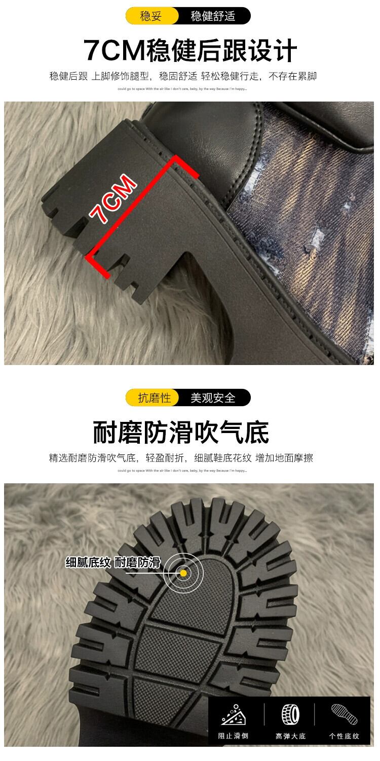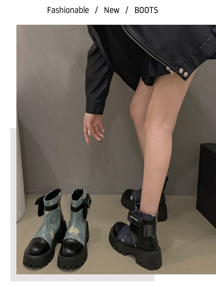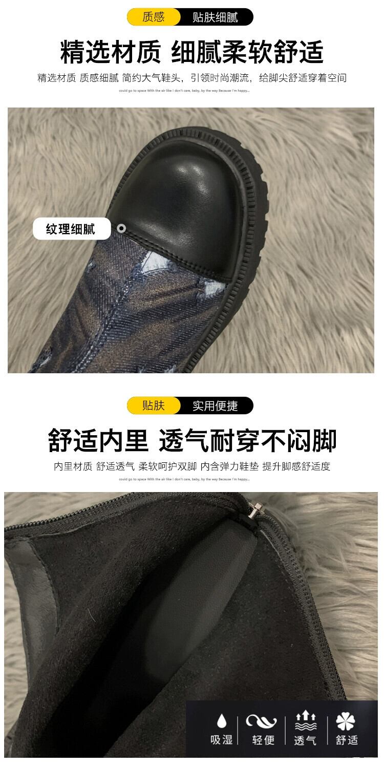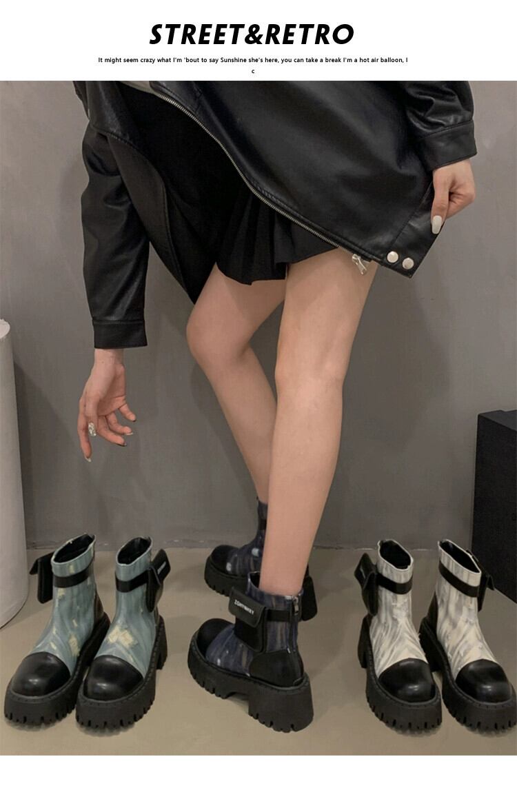Jia Bujia インターネット有名人ショートブーツの女性 2023 秋の新スタイルフランスのファッション人気のレトロ高め厚いヒールオートバイブーツ 靴 シューズ オータム 秋物 jxjxf64095106