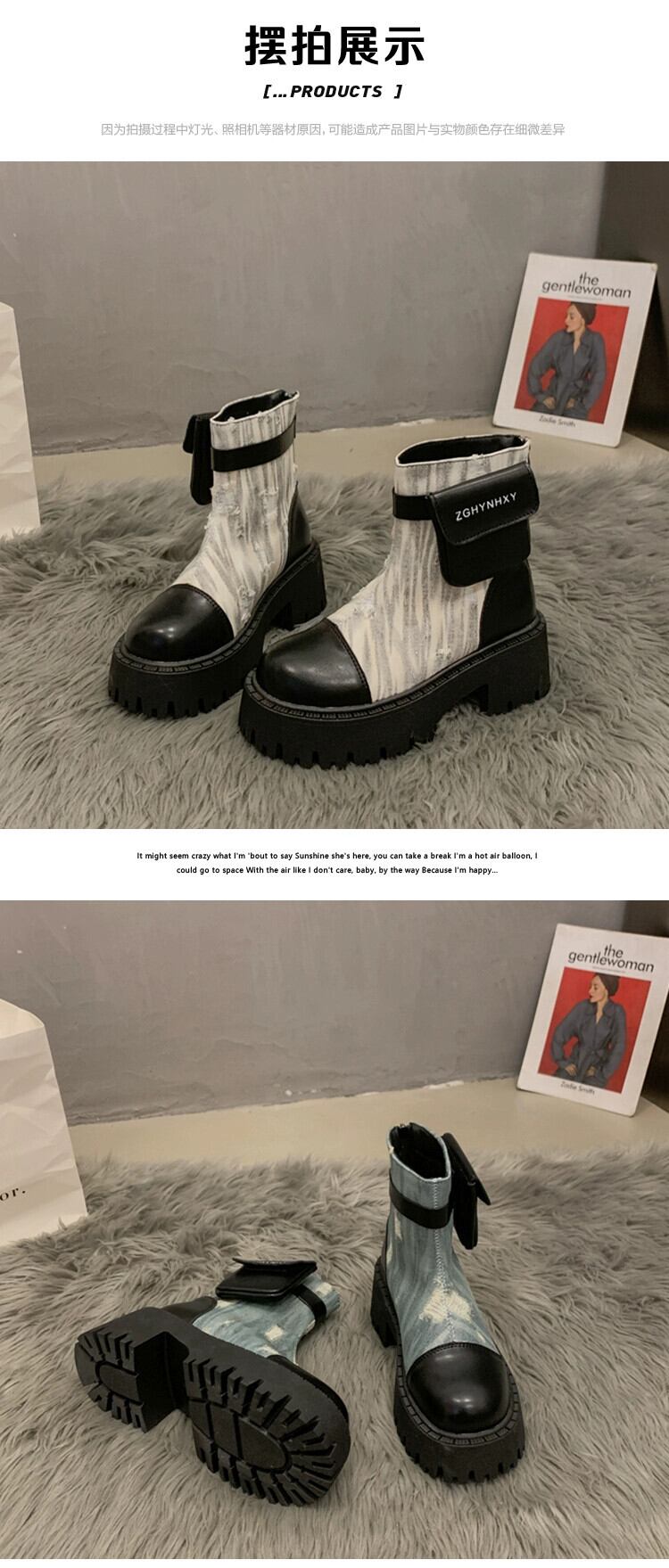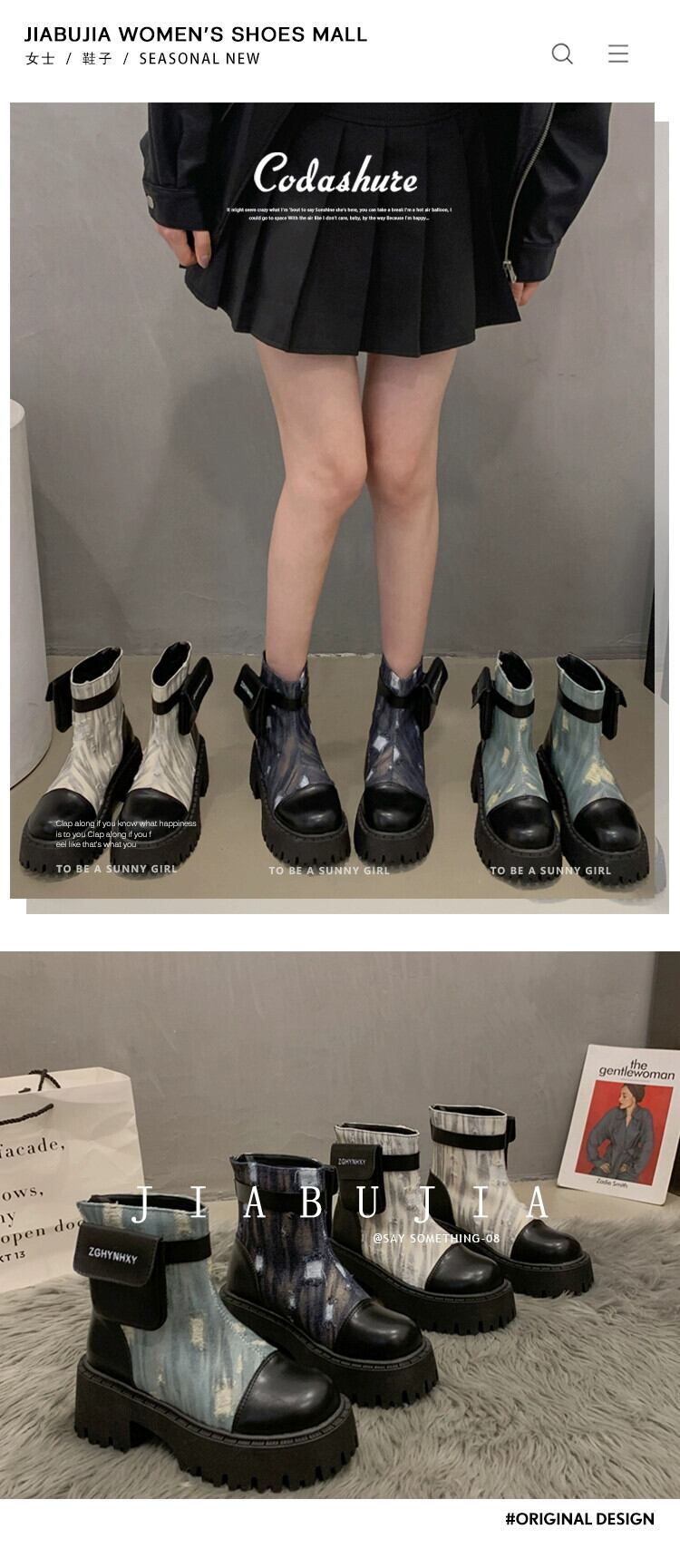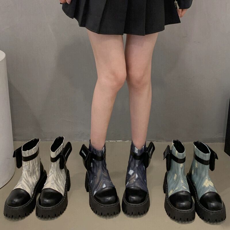 Jia Bujia インターネット有名人ショートブーツの女性 2023 秋の新スタイルフランスのファッション人気のレトロ高め厚いヒールオートバイブーツ 靴 シューズ オータム 秋物 jxjxf64095106