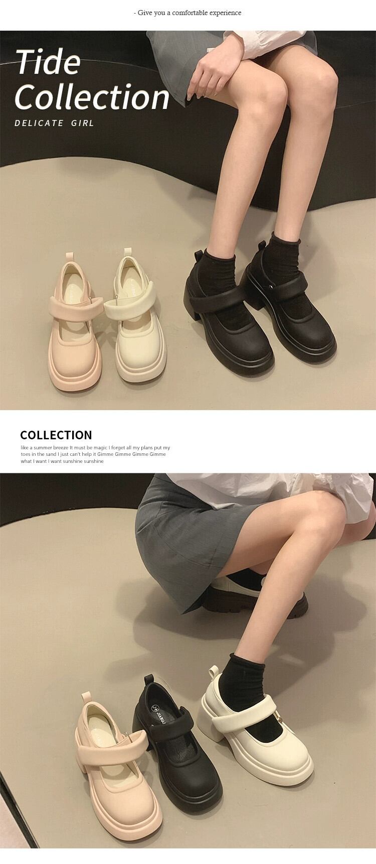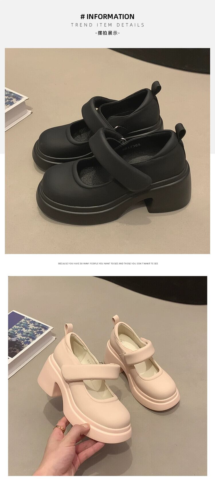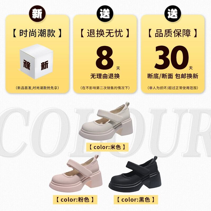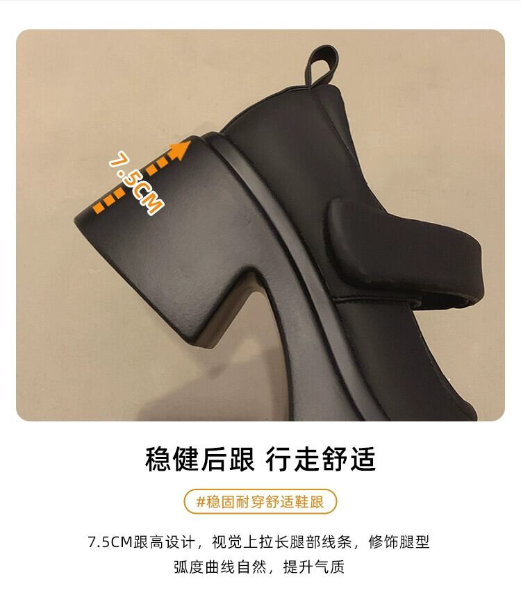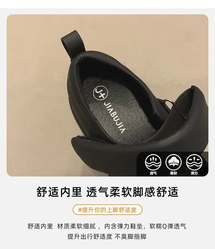 Jia Bujia インターネット有名人のシングルシューズの女性 2023 秋の新ファッションベルクロ小さなハイヒールスタイルの小さな革靴 オータム 秋物 レザー jxjxf39924256540