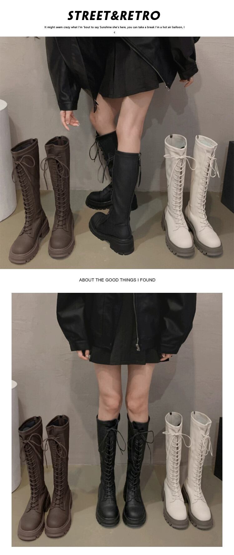 Jia Bujia のニーハイブーツの女性 2023 秋の新作ファッション多用途でハンサムな厚底英国スタイルの騎士ブーツ 靴 シューズ オータム 秋物 jxjxf30265817040