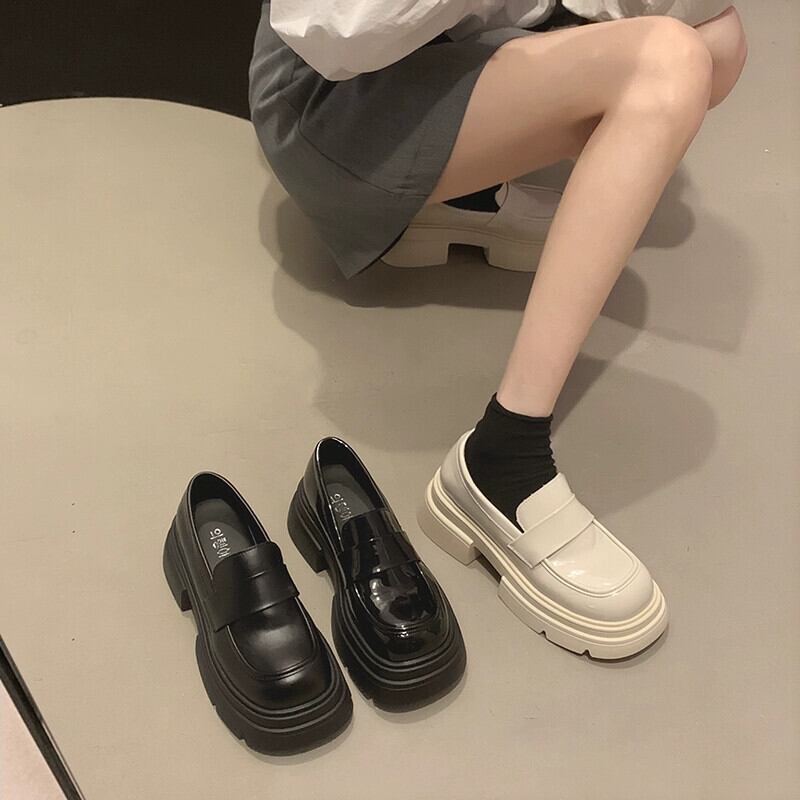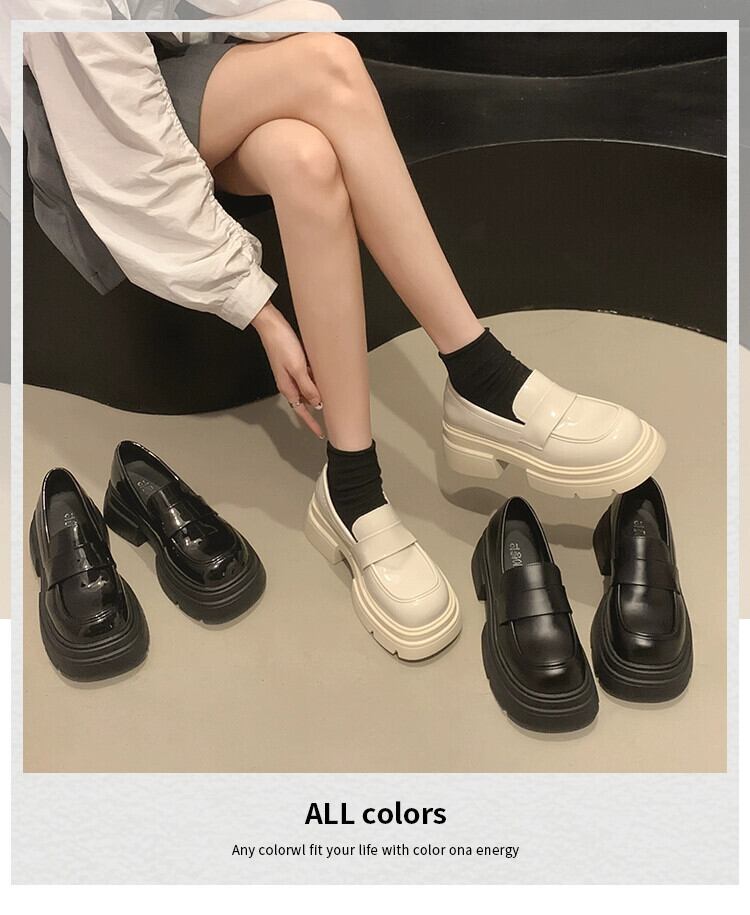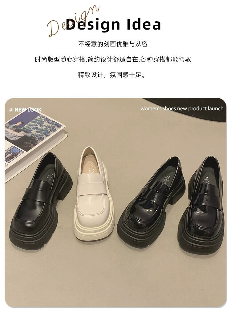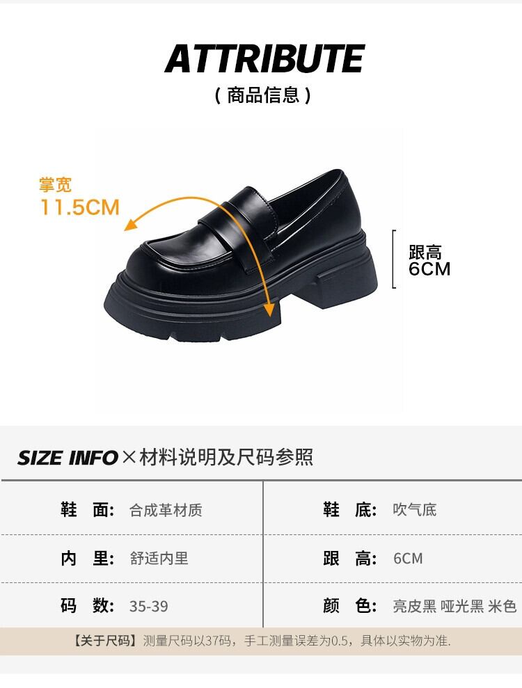 Jia Bufake 小さな革の靴の女性 2023 新しい英国スタイルのスリッポンローファー黒厚底秋の靴を高める シューズ ブラック オータム 秋物 レザー jxjxf28868855369