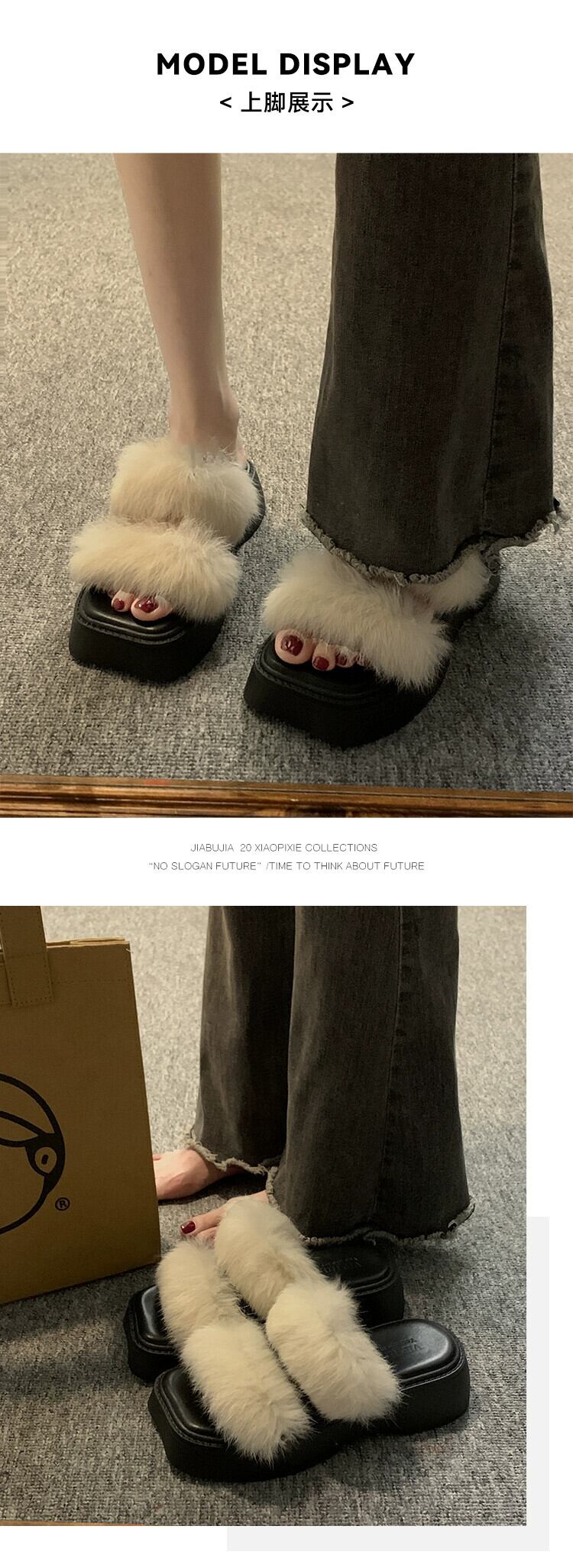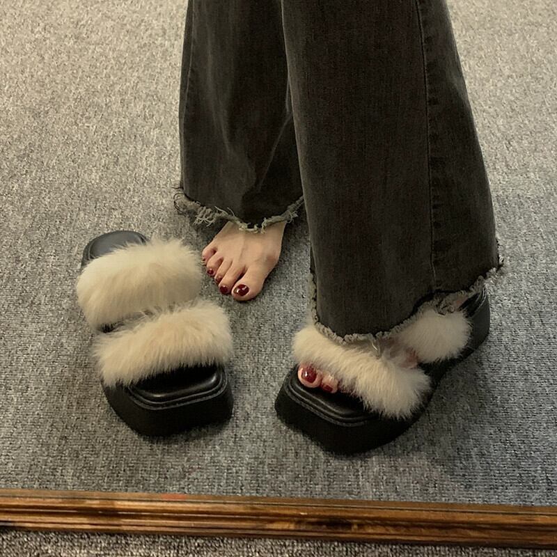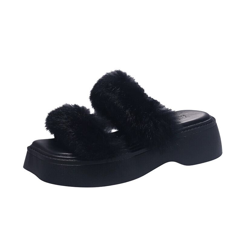 Jia Bujia のアウターウェア毛皮のスリッパ女性 2023 秋の新スタイルの comtable と eign スタイルのレトロなフランスの厚底スリッパ ミュール 靴 シューズ オータム 秋物 jxjxf6154518697